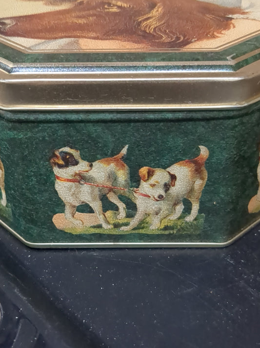 Cookie Victoria Graphics Victorian Blue Eyed Girl and Retriever Octagon Tin 1994 tin1164