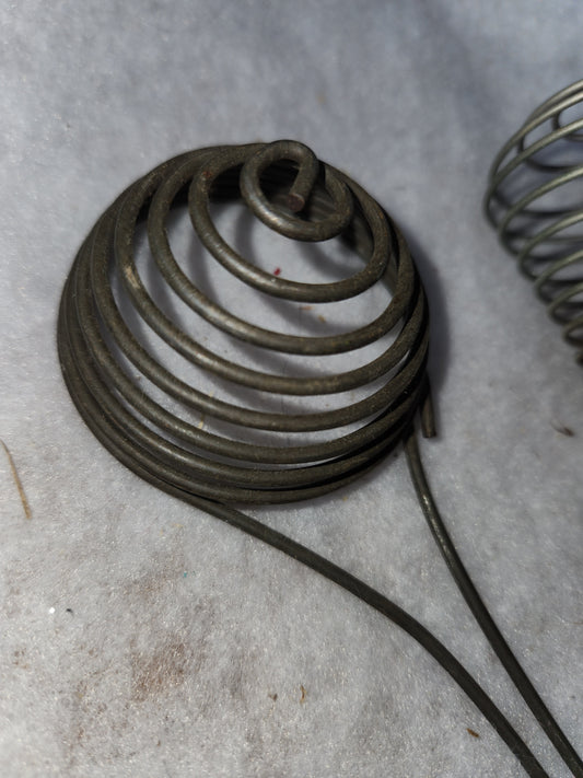 Vintage 2 piece kitchen metal wire coil beehive egg separator & wire coil whisk kit77