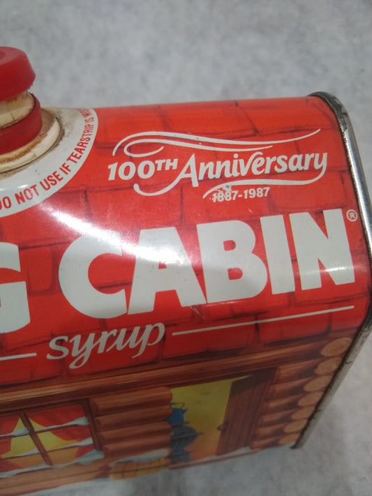 Vintage EMPTY tin "100th Anniversary 1887-1987 Log Cabin Syrup with Top tin663