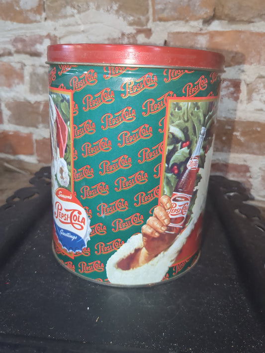 Vintage Christmas Pepsi-Cola Pepsi Santa Claus Collectible Popcorn Tin Houston Foods tin655