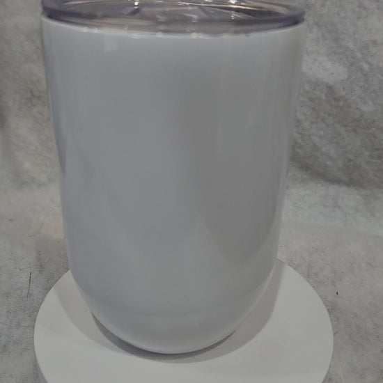 12 oz stainless steel, insulated wine tumbler. Design is sublimation, please avoid extreme heat like a hot car or dishwasher. Handwashing is recommended. Please see photos as they are part of the description.