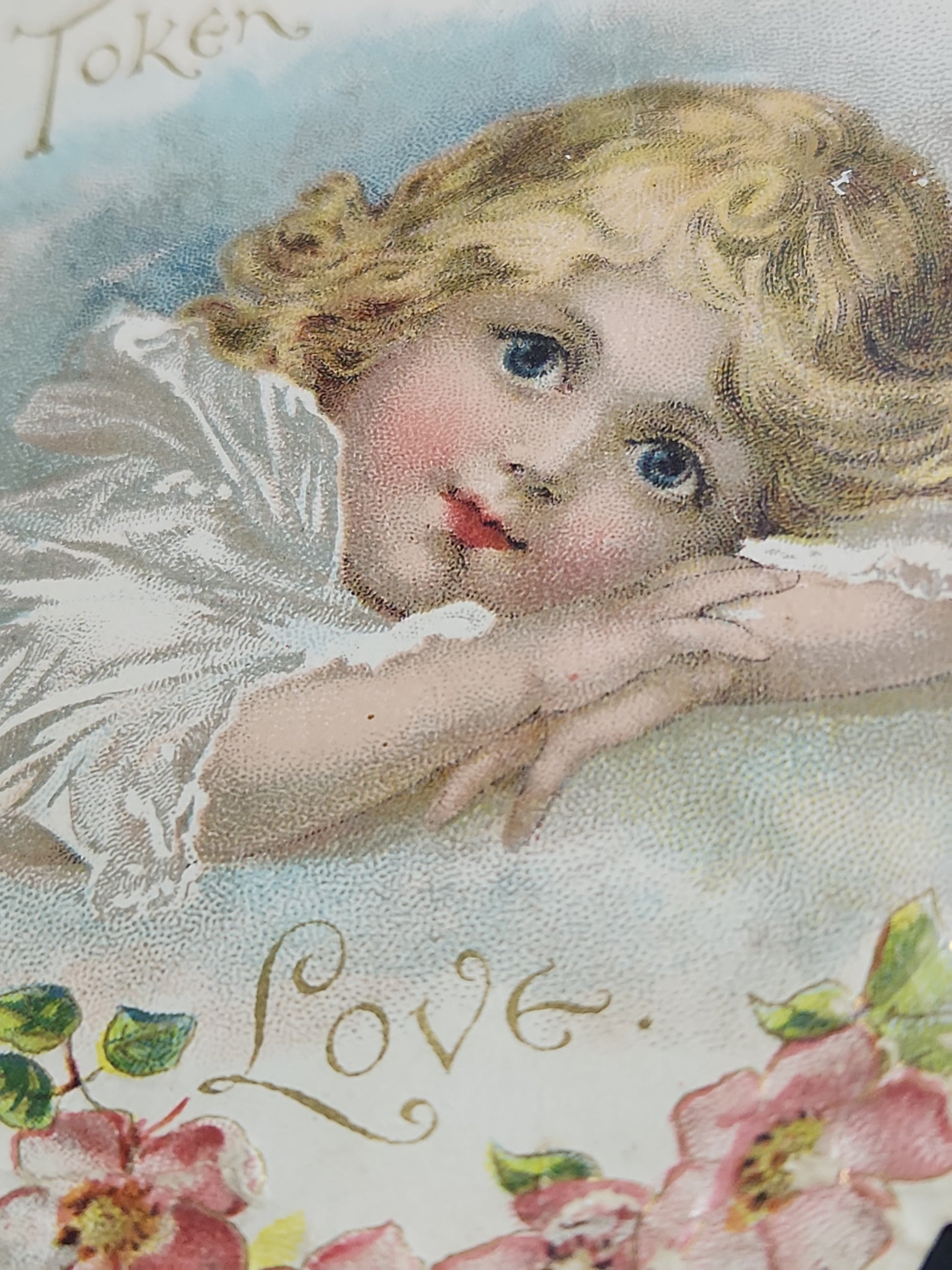 Antique 1880s Die-Cut Embossed Heart Valentine Card Child A Token of Love Poem
