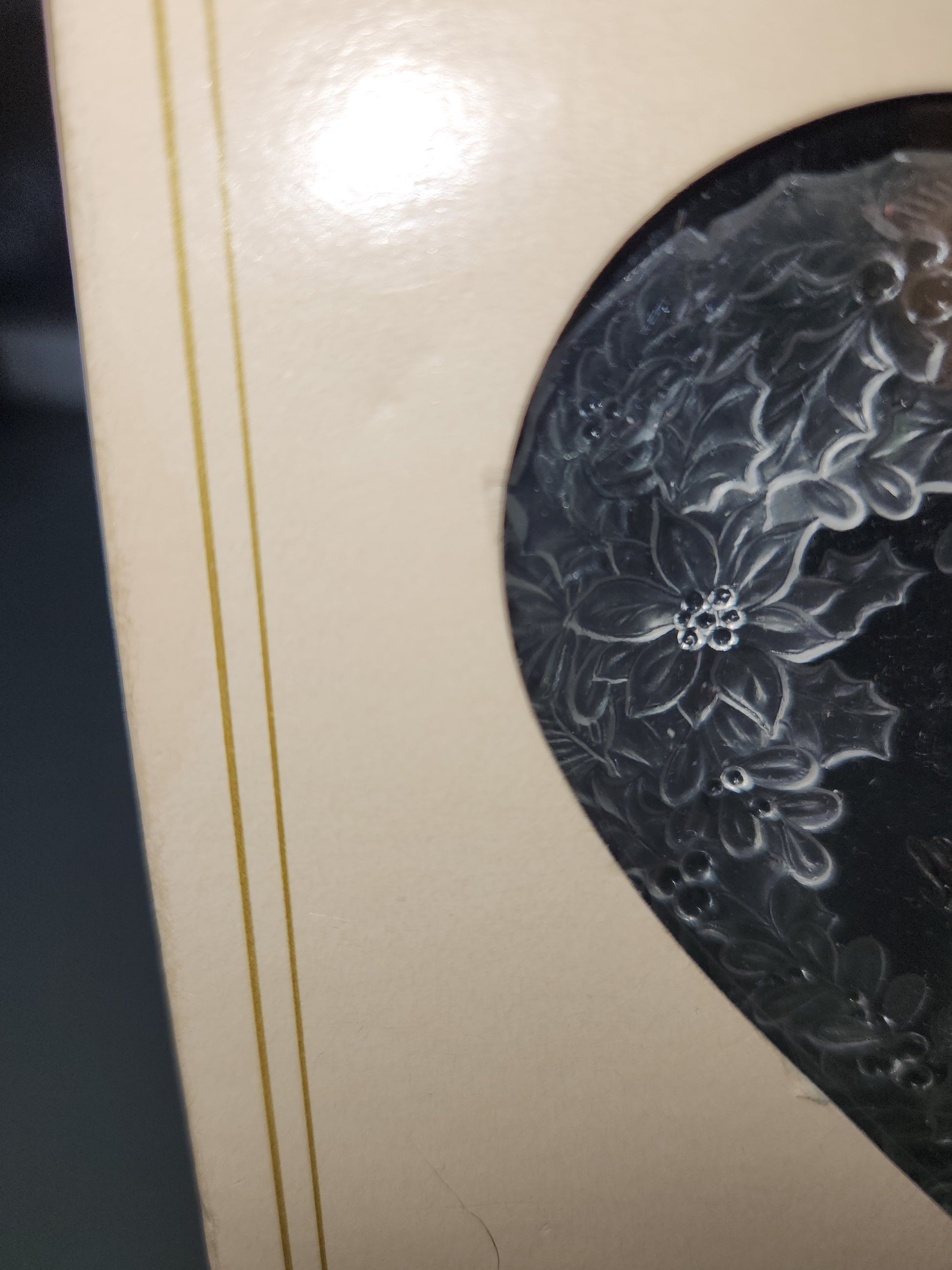 This ornamentnis in good condition. The box has some shelf wear and one corner bent. The plastic holding the ornamwnt has yellowed a bit. Please see photos as they are part of the description