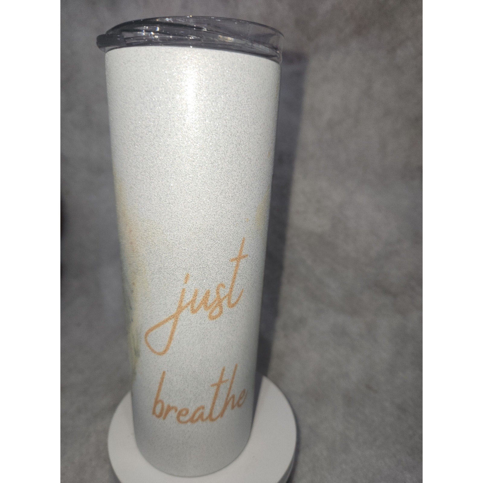 20 oz Stainless Steel Glitter Tumbler Just Breathe Butterflies flowers