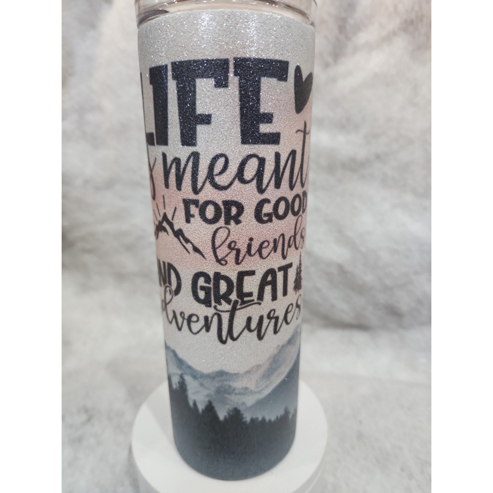 20 oz Stainless Steel Glitter Tumbler Life is Meant For Good Friends & Great Adventure
