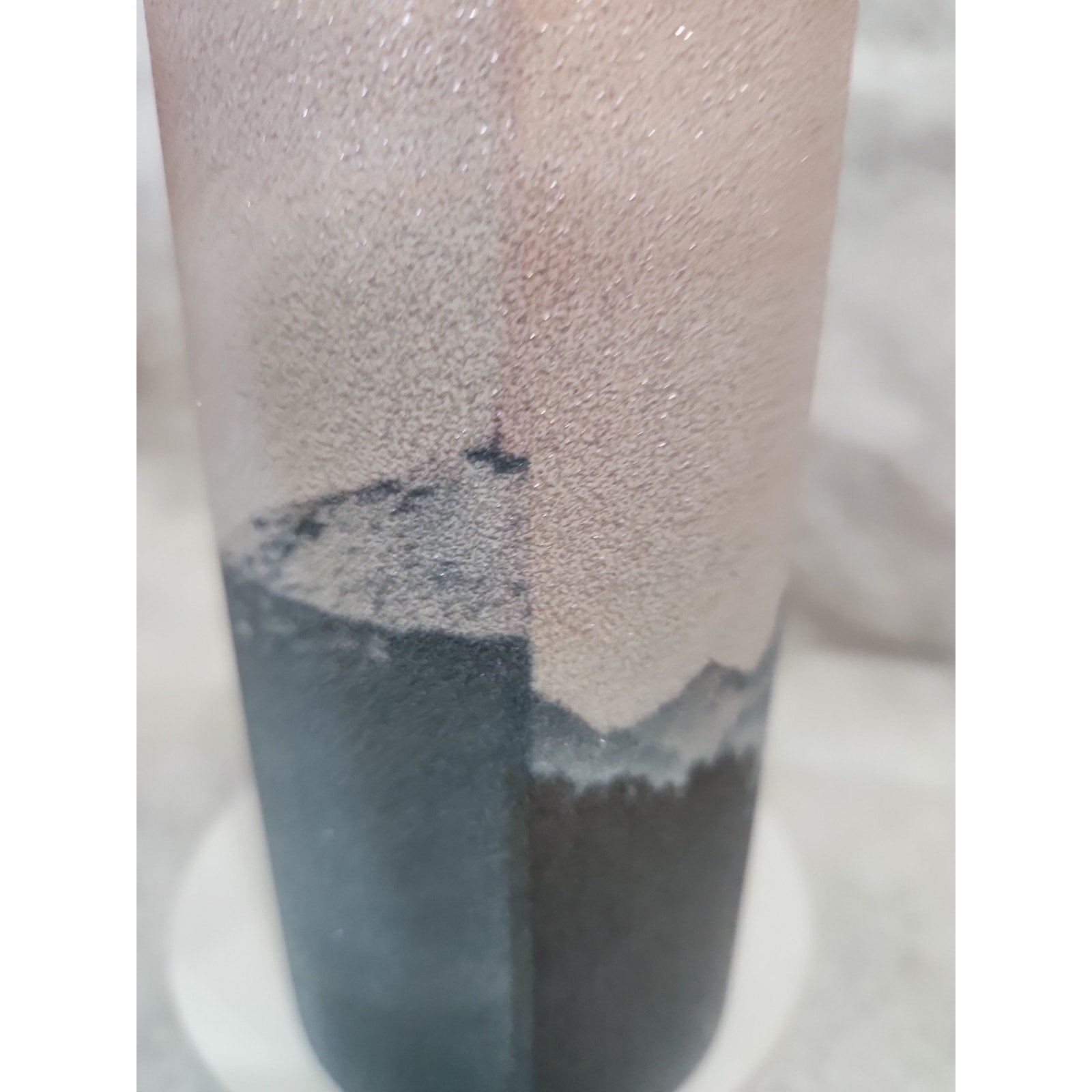The S is not fully on the cup. This is a 20 oz glitter tumbler. The image is applied with heat, so please avoid extreme heat from a really hot car or the dishwasher. Please see photos as they are part of the description. We do not accept returns for finished tumblers due to the fact that if dropped, they can dent or the lid can break, or the image can fade if you put in the dishwasher.