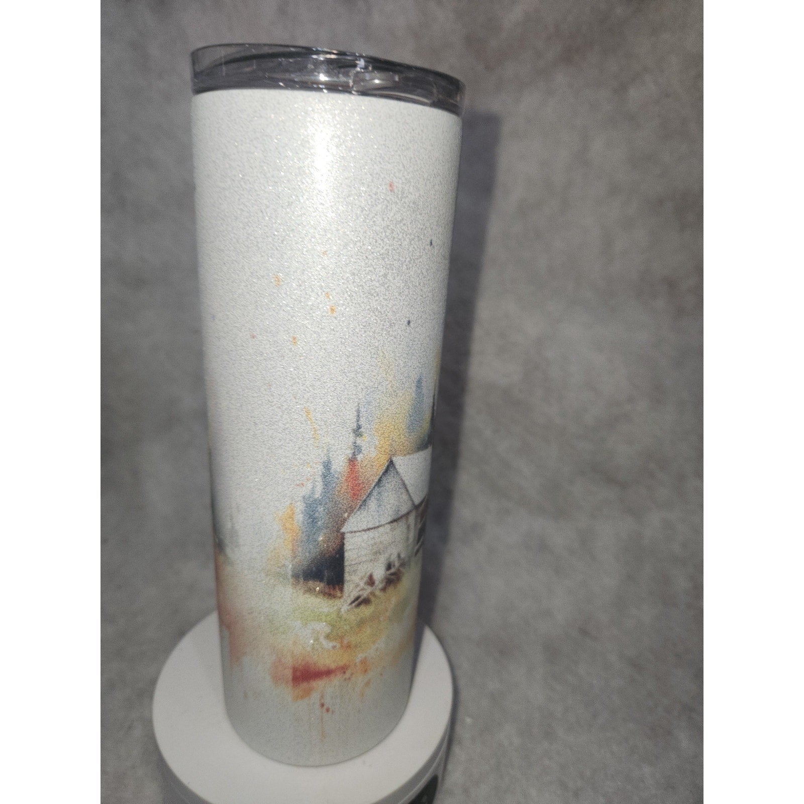 20 oz Stainless Steel Glitter Tumbler Watercolor Barns