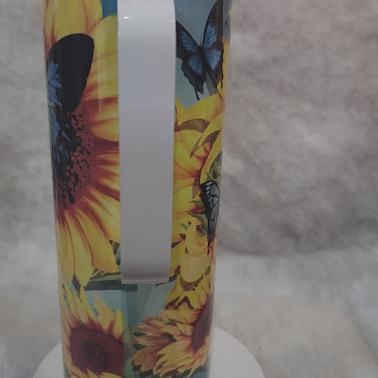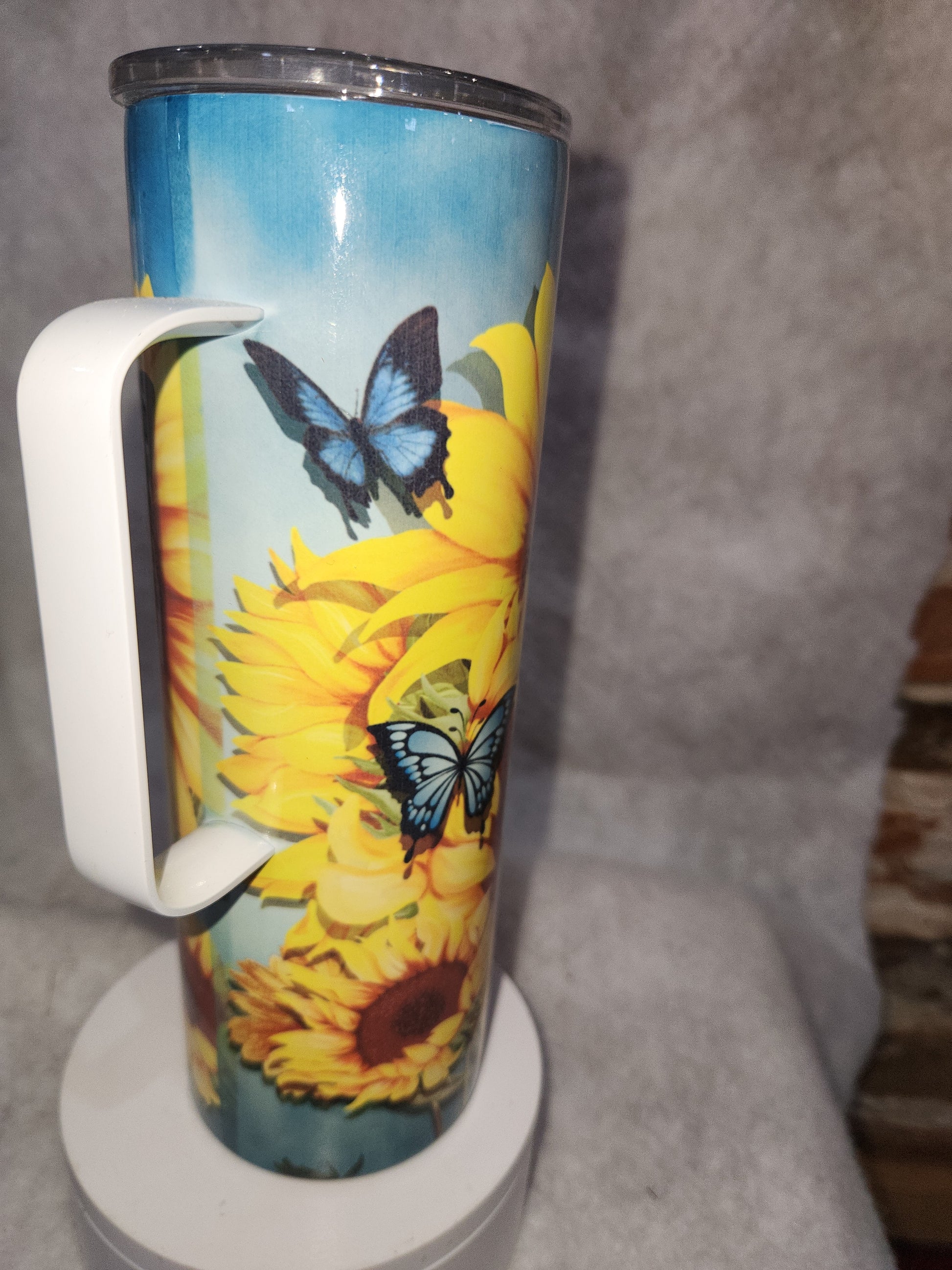 20 oz stainless steel, insulated, tumbler with handle Sunflower & Butterflies