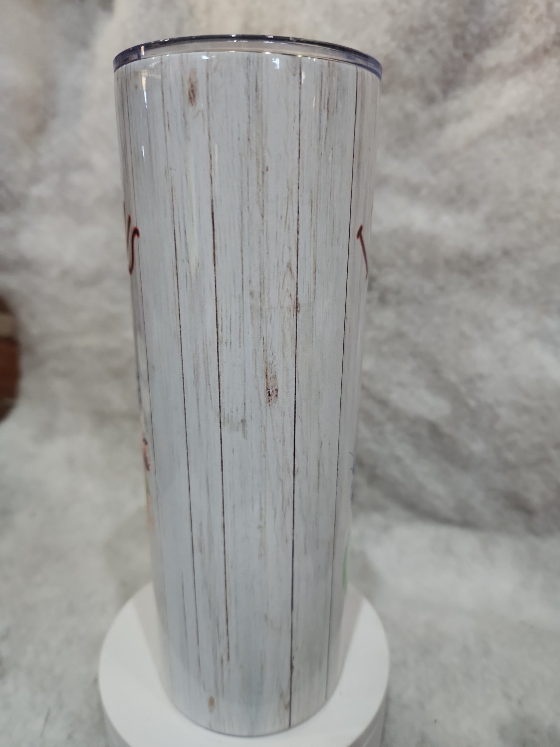 20 oz stainless steel insulated tumbler with a sublimated design will need to avoid extreme heat and hand wash only. This cup has a chicken on it and says I can buy myself chickens and I can get my own eggs