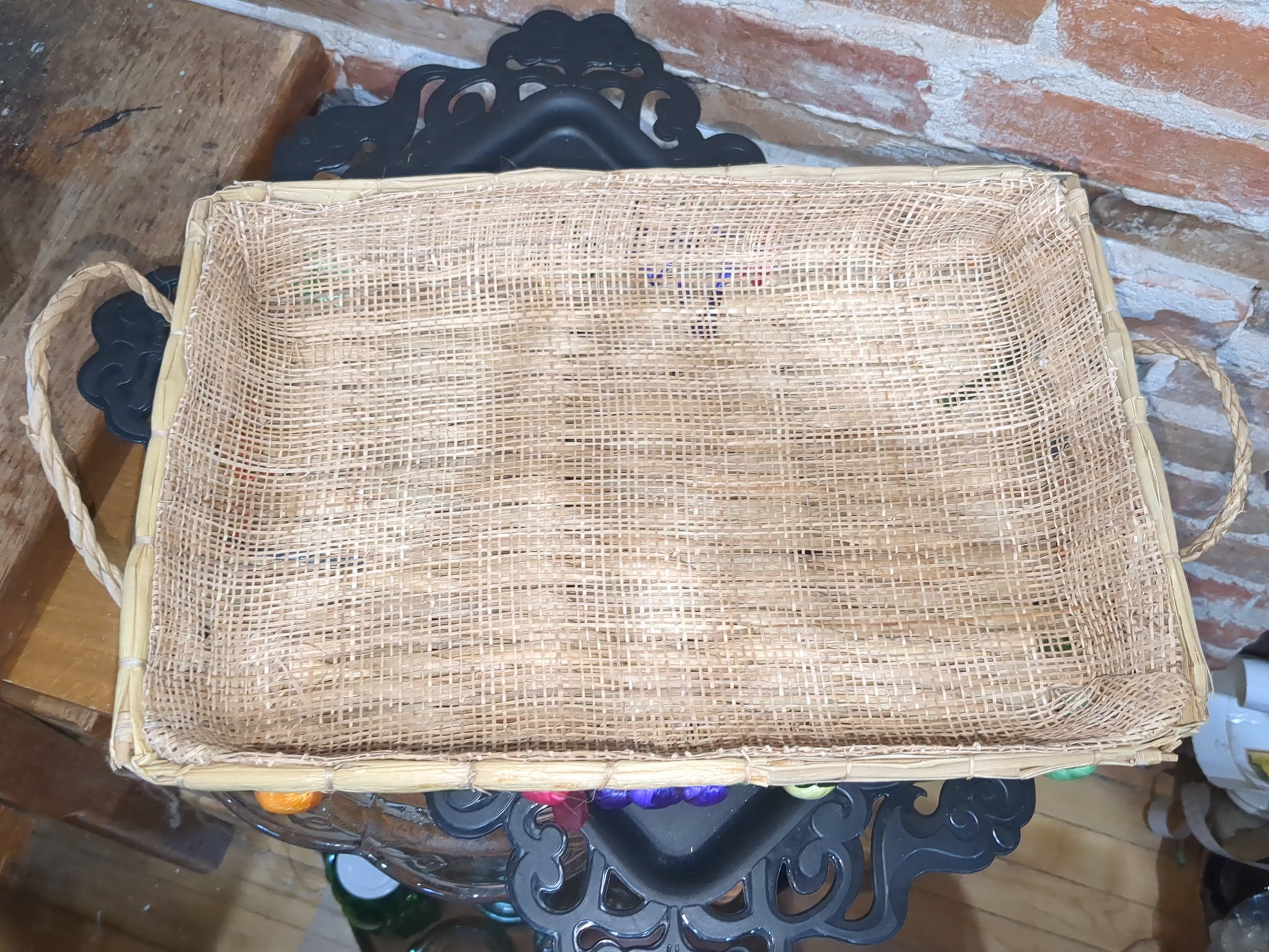 3 Vintage Boho Nesting Raffia Wicker Straw Lined Casserole Baskets, Tray Set 1970s or 1980s