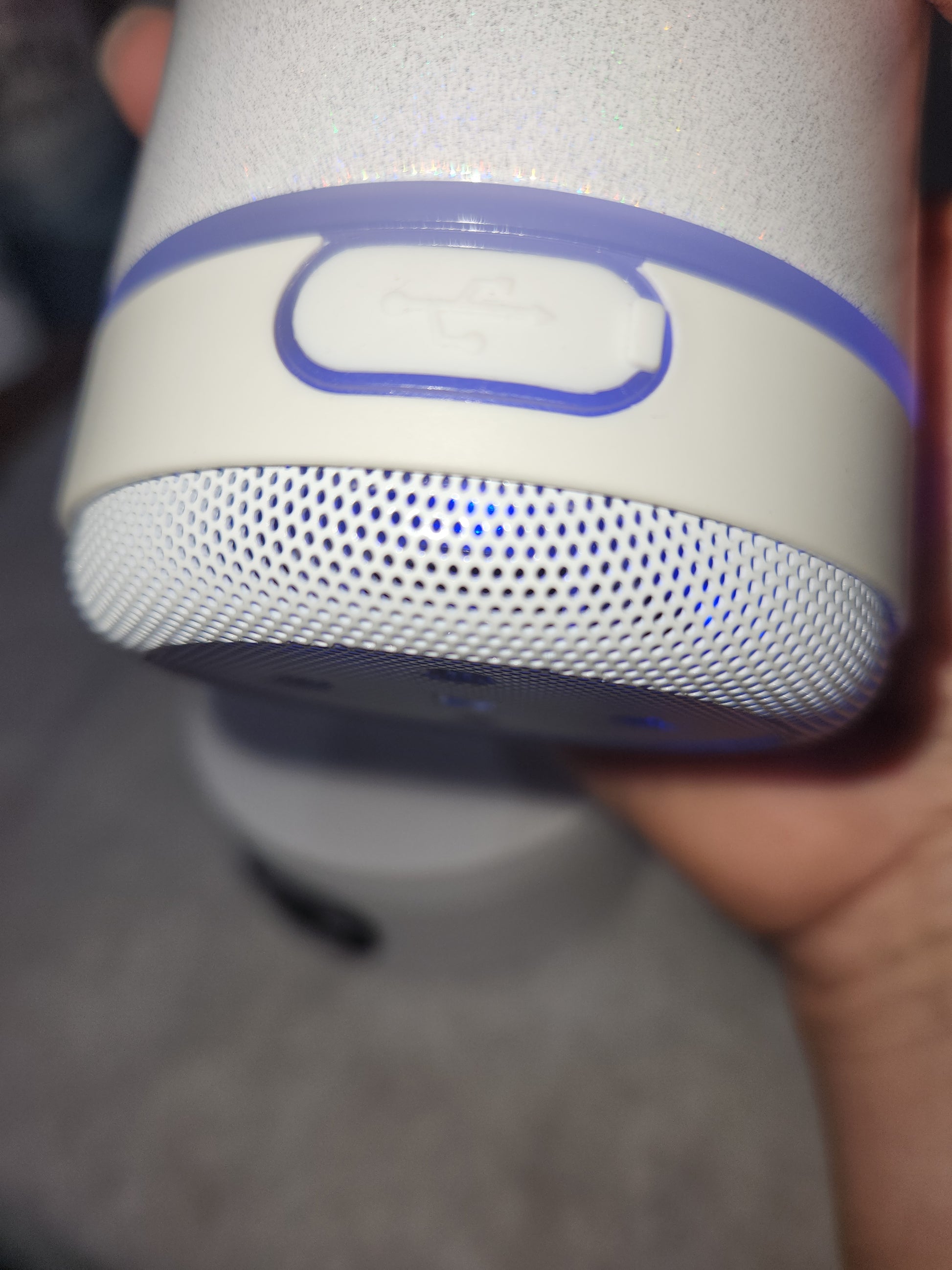 White speaker, white handle and a holographic appearance. We can customize this tumbler for you for an additional $10, please contact us before ordering to see if it something we can do.