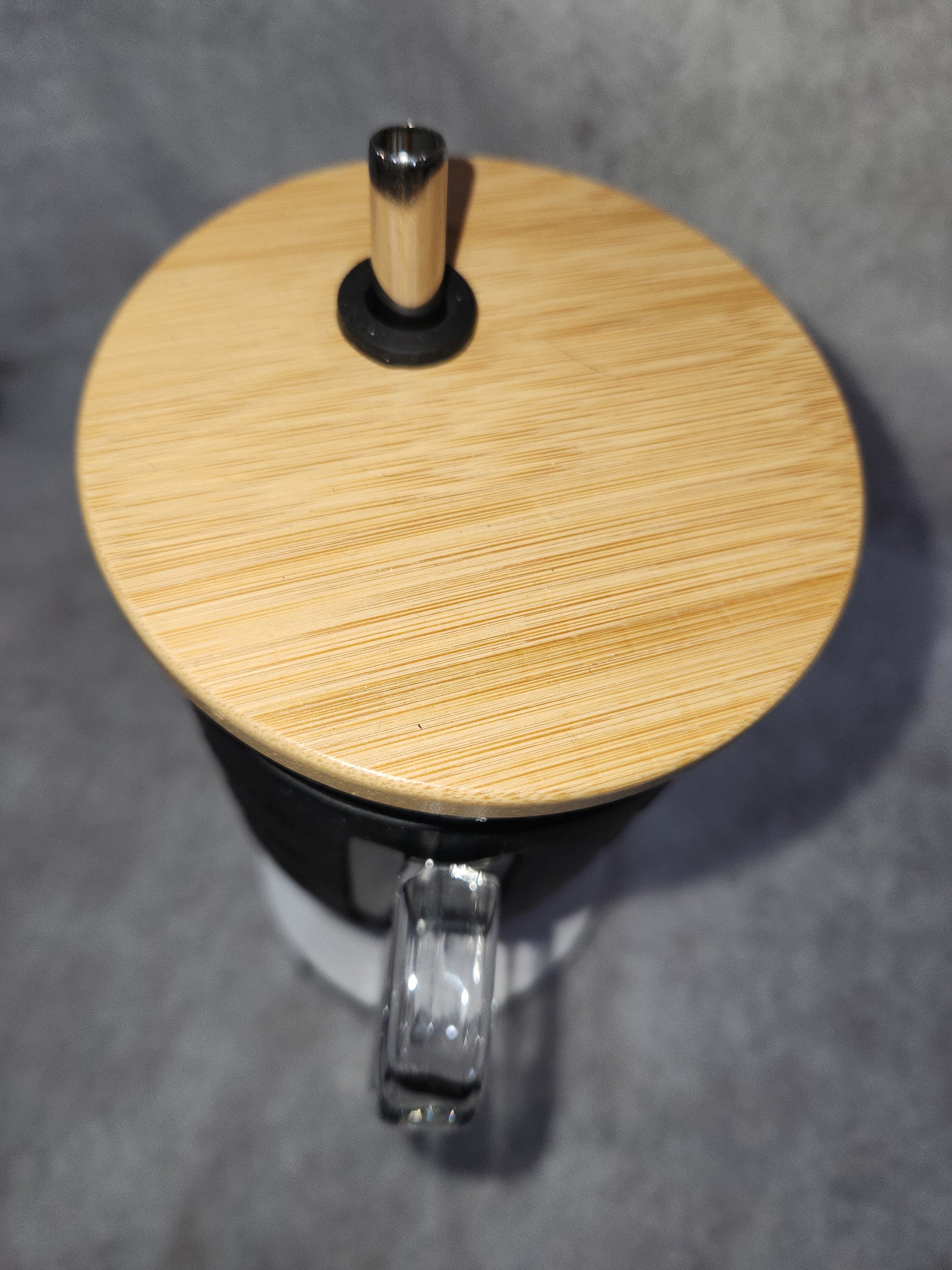 32 oz glass mug with a black silicone sleeve that can be removed. It has a bamboo wood lid that could be engraved on for additional fees. It has a stainless steel straw with removeable silicone tip if you dont like the feel of stainless on your teeth. The glass is pretty strong and has survived drops on our hardwood floors. Please see photos as they are part of the description.