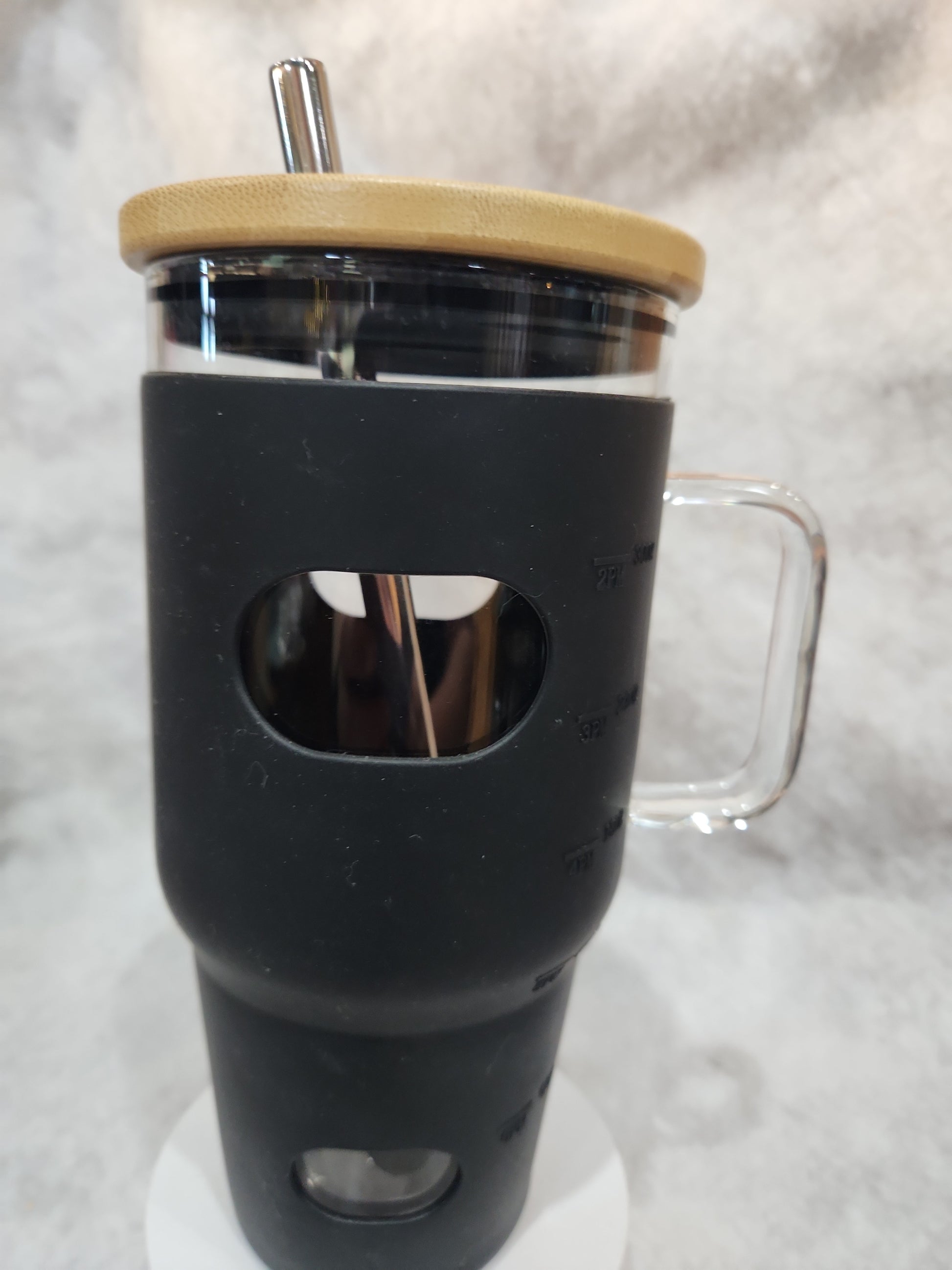 32 oz glass tumbler with handle and removeable black silicone sleeve CLEARANCE! Tg8