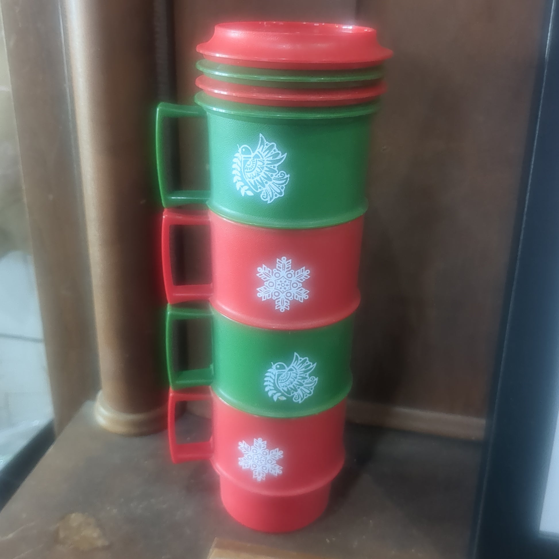 Vintage Tupperware. Holiday cups with saucers. In good condition