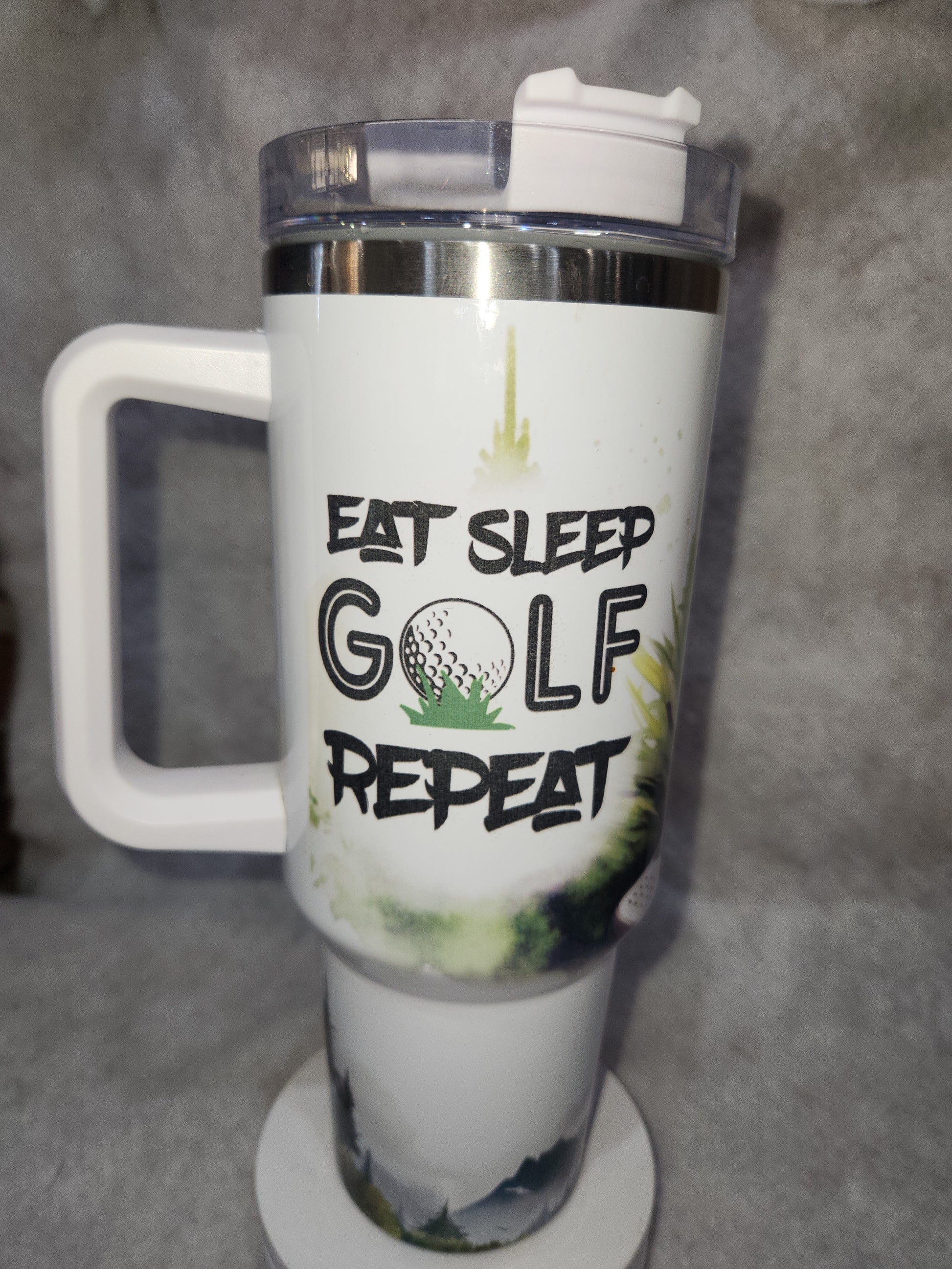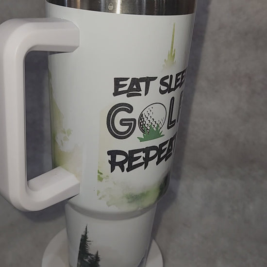 40 Oz Insulated Stainless Steel Tumbler says, "Eat Sleep Golf Repeat" tgo4