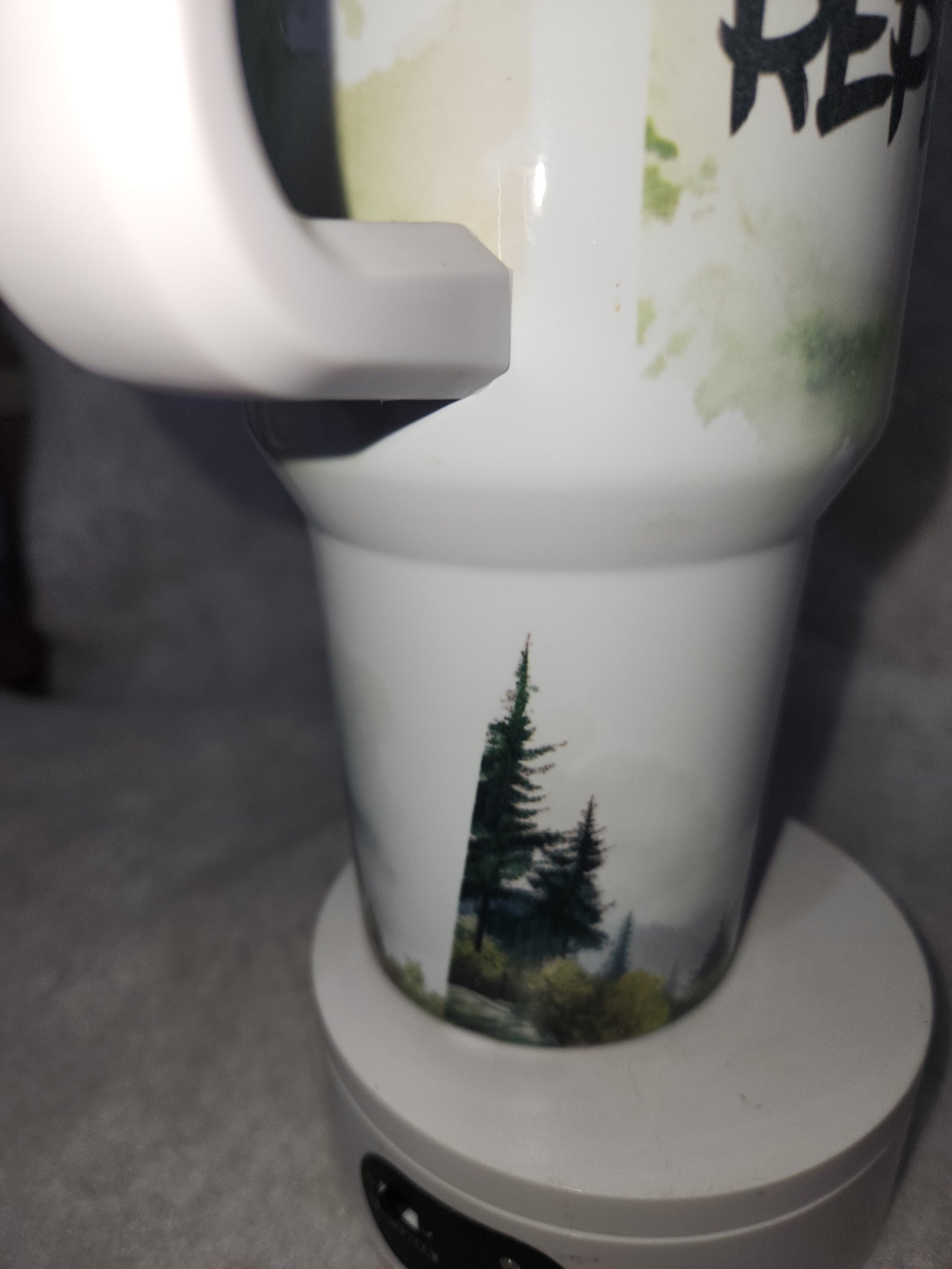 40 oz stainless steel insulated tumbler bottom will fit in both vehicle drink holders. The image is sublimated on to the Tumbler, avoid extreme heat such as hot cars and dishwashers. Hand washing is recommended. Please see photos as they are part of the description. We do not take returns on tumblers once out of our hands, due to the chance they could be dented, or top broken if it is dropped and the image may fade if you put in the dishwasher.