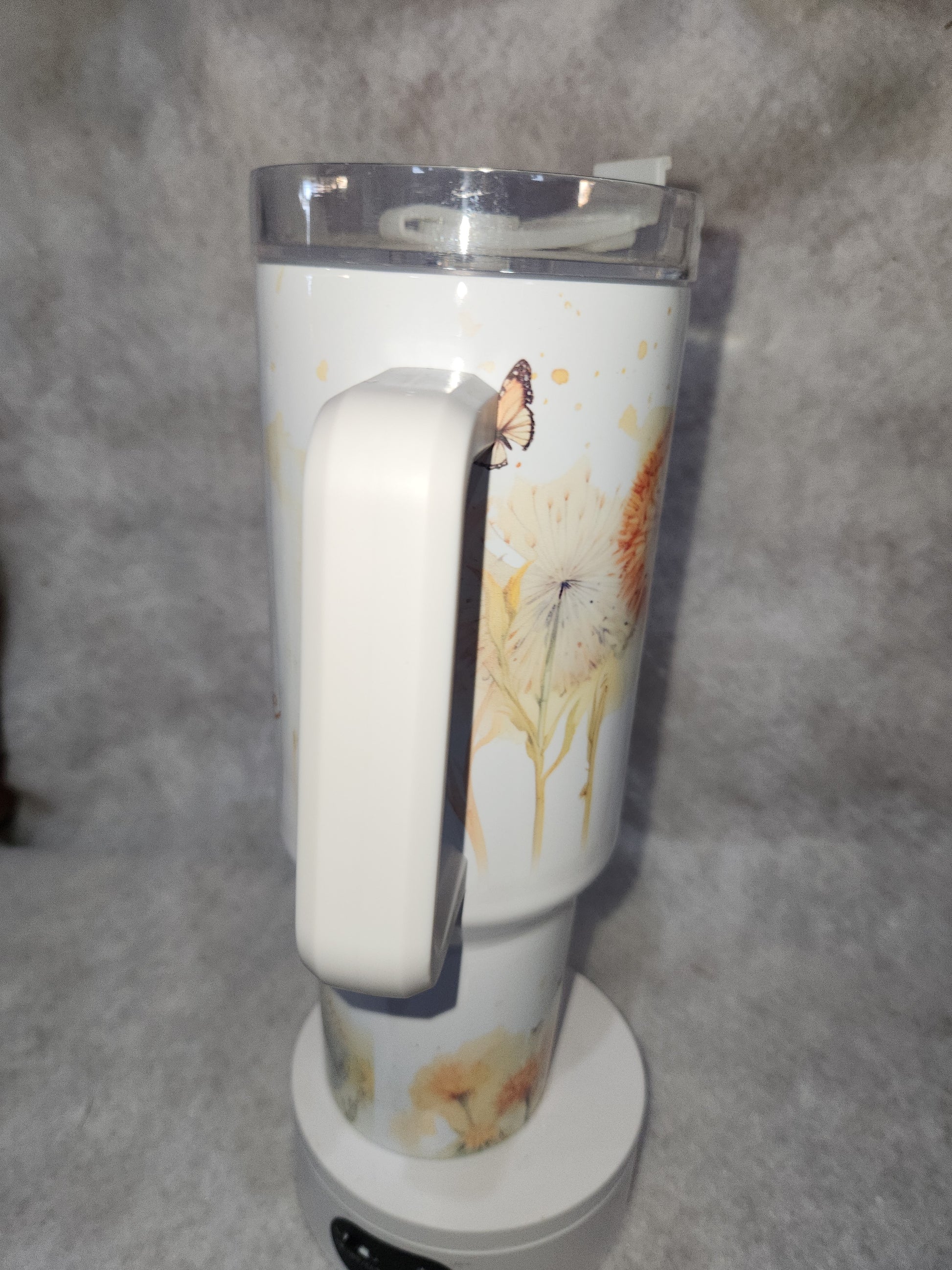 40 oz stainless steel insulated tumbler bottom will fit in both vehicle drink holders. The image is sublimated on to the Tumbler, avoid extreme heat and hand washing is recommended.