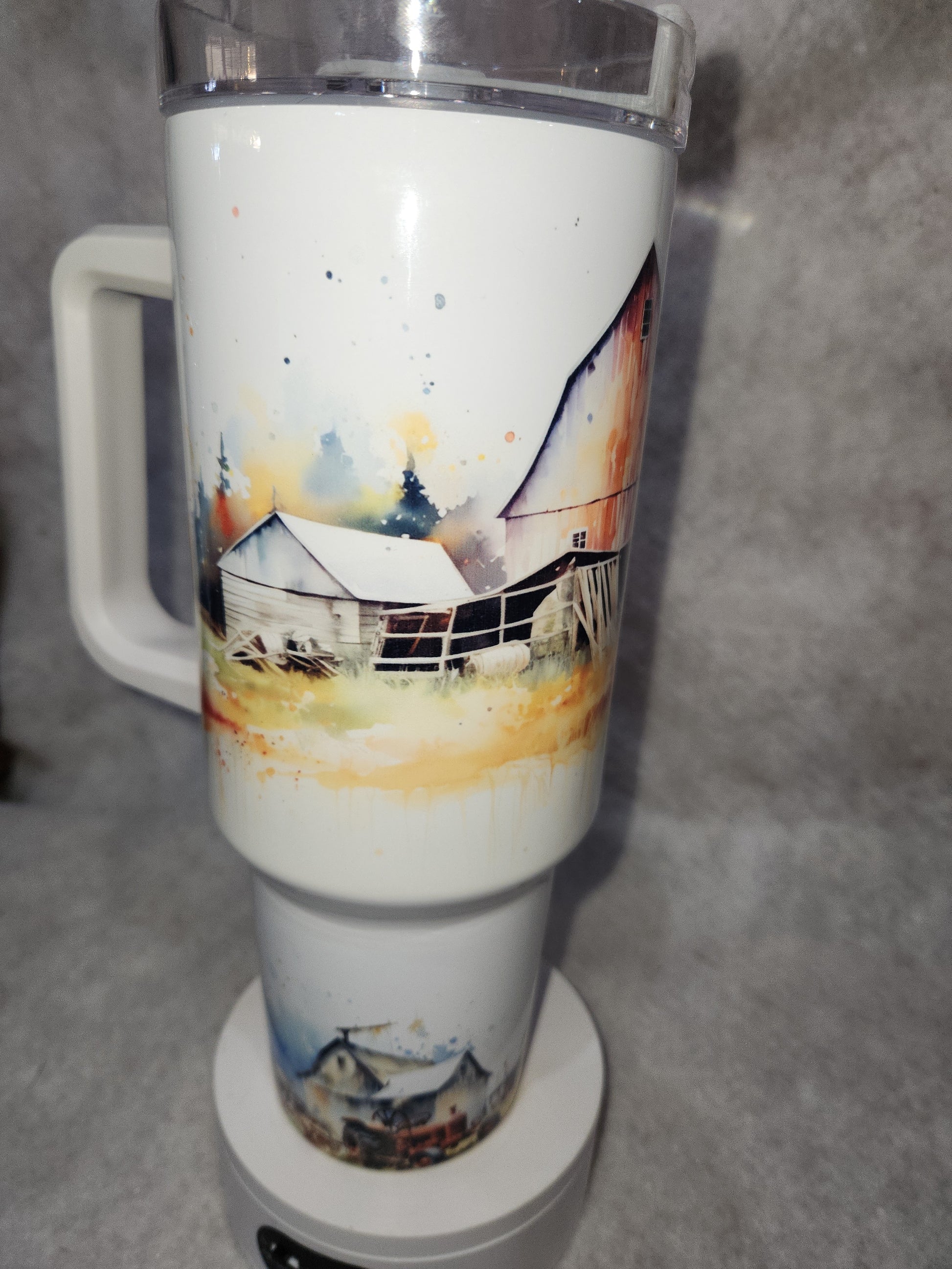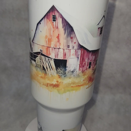 40 Oz Insulated Stainless Steel Tumbler Watercolor Barns tbf1