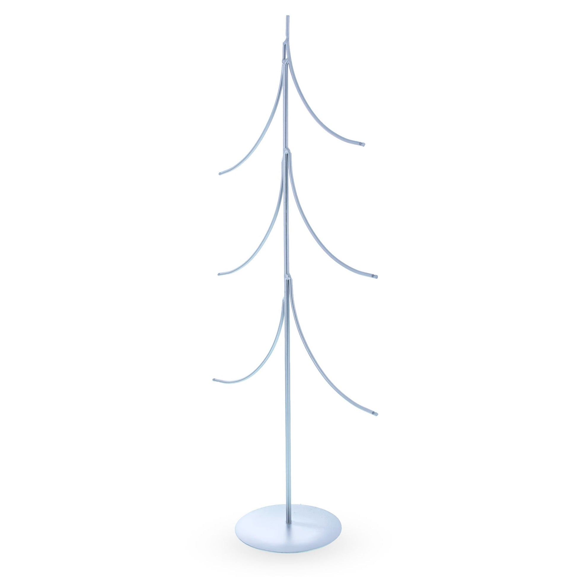 Bring a modern twist to your holiday or everyday décor with this 14-inch tiered tree-style ornament display stand. Crafted from silver-coated metal, this sculptural stand features gracefully curved arms arranged in a symmetrical, tree-like form—perfect for showcasing multiple hanging ornaments or keepsakes. Its vertical design makes excellent use of space, while the flat, weighted base ensures stability on tabletops, shelves, or mantels.