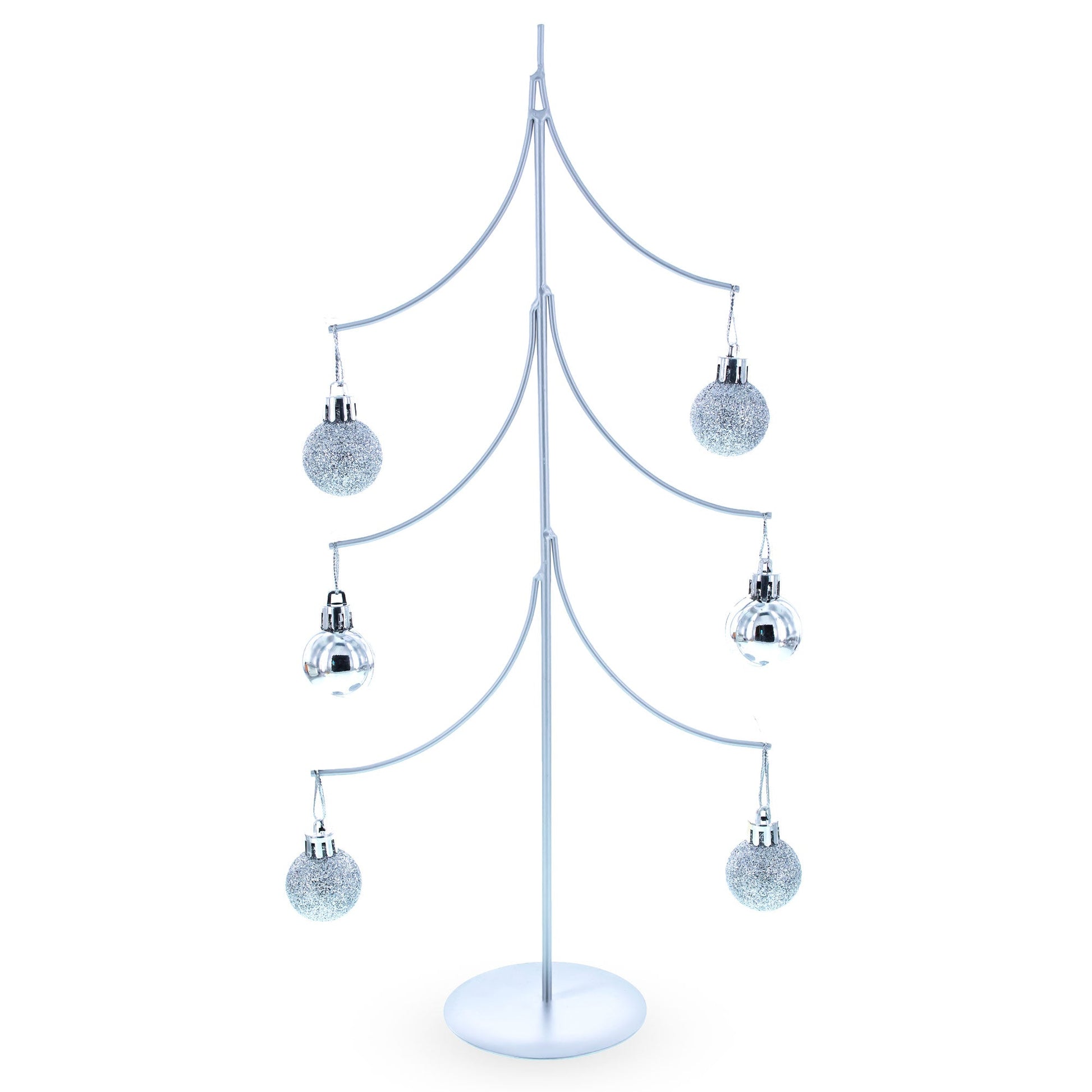 6-Arm Tiered Tree Silver Metal Ornament Display Stand 14 Inches (Poland)