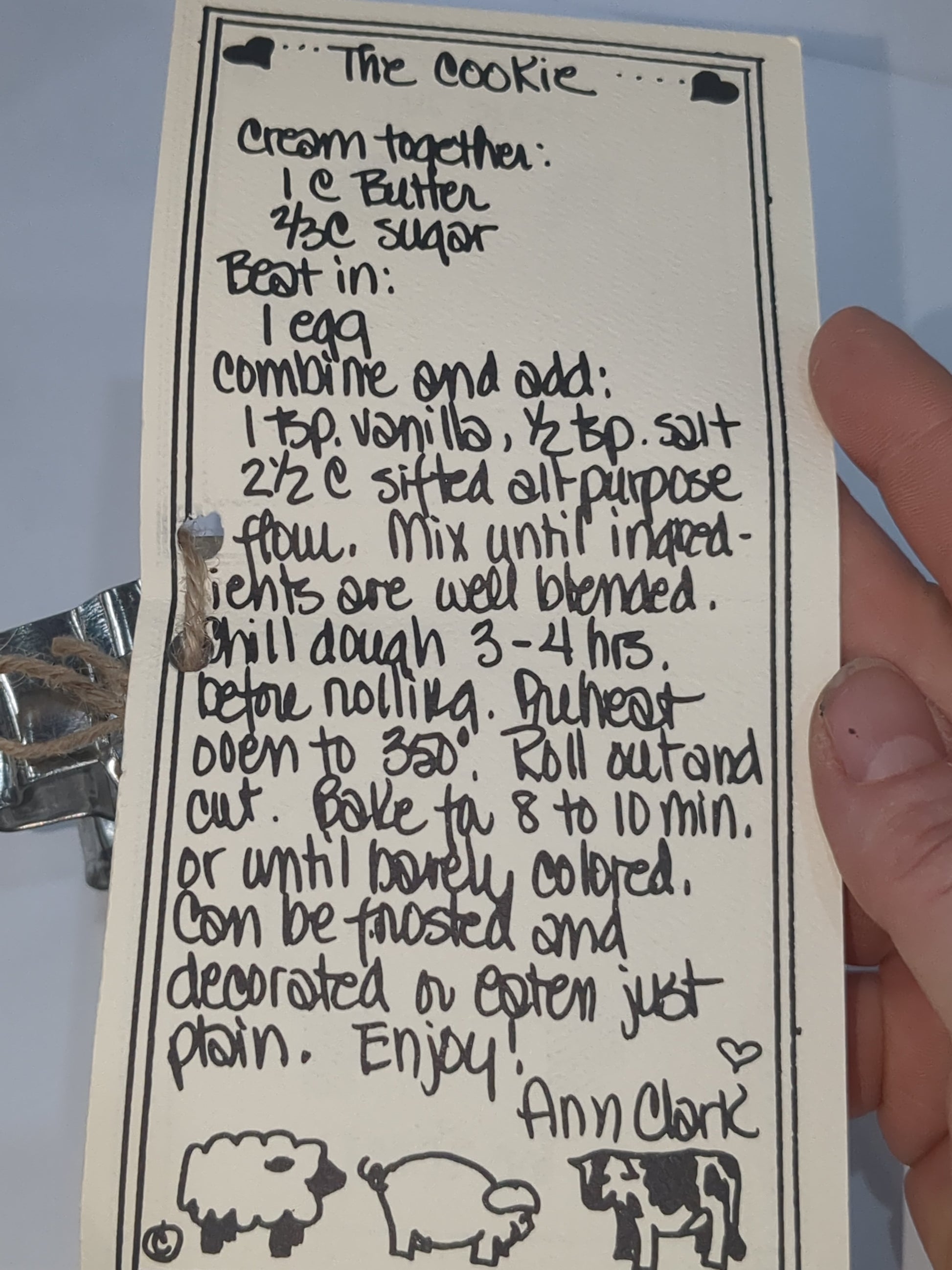 this is a sheep cookie cutter with recipe card attached this is an Ann Clark cookie cutter