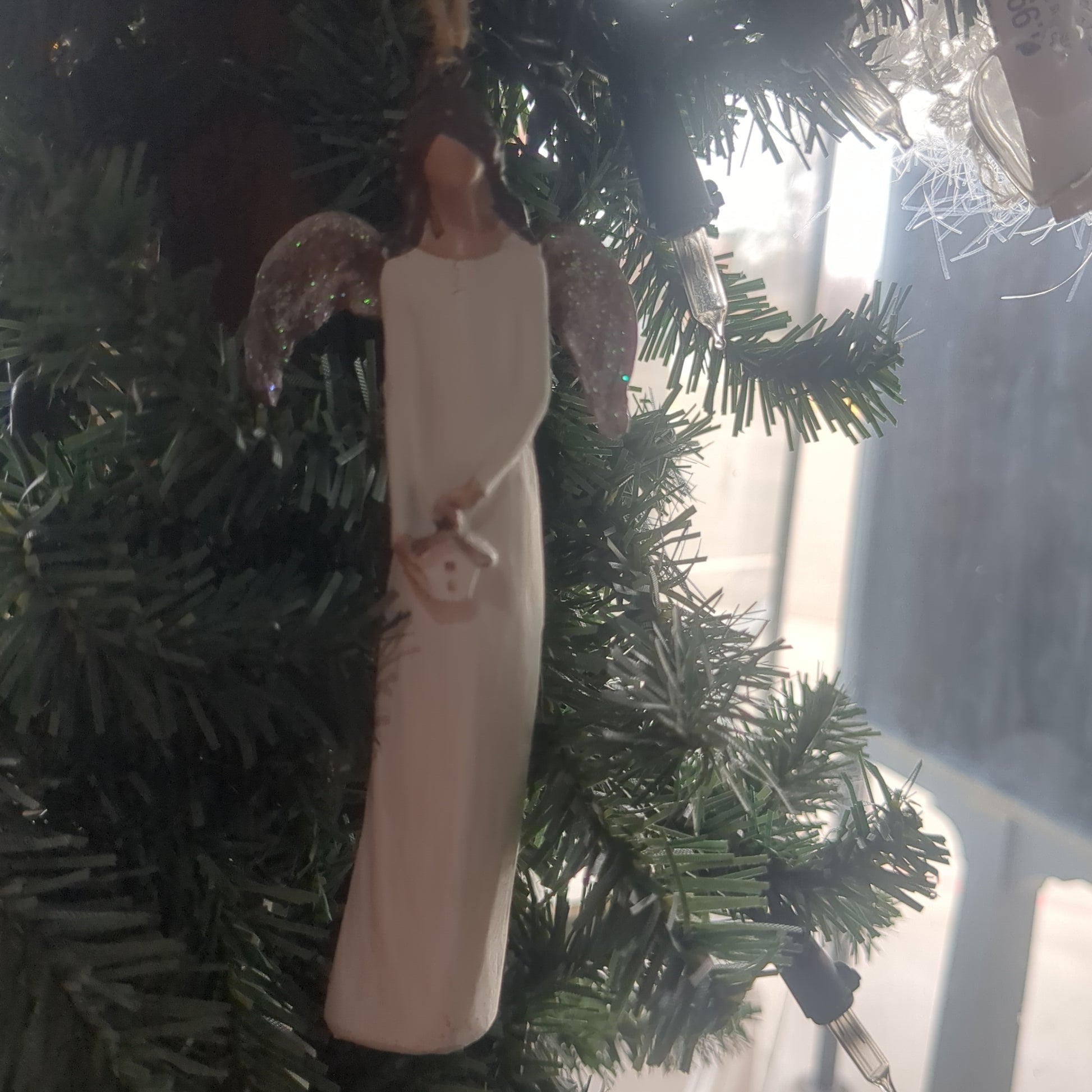 Angel holding a birdhouse ornament