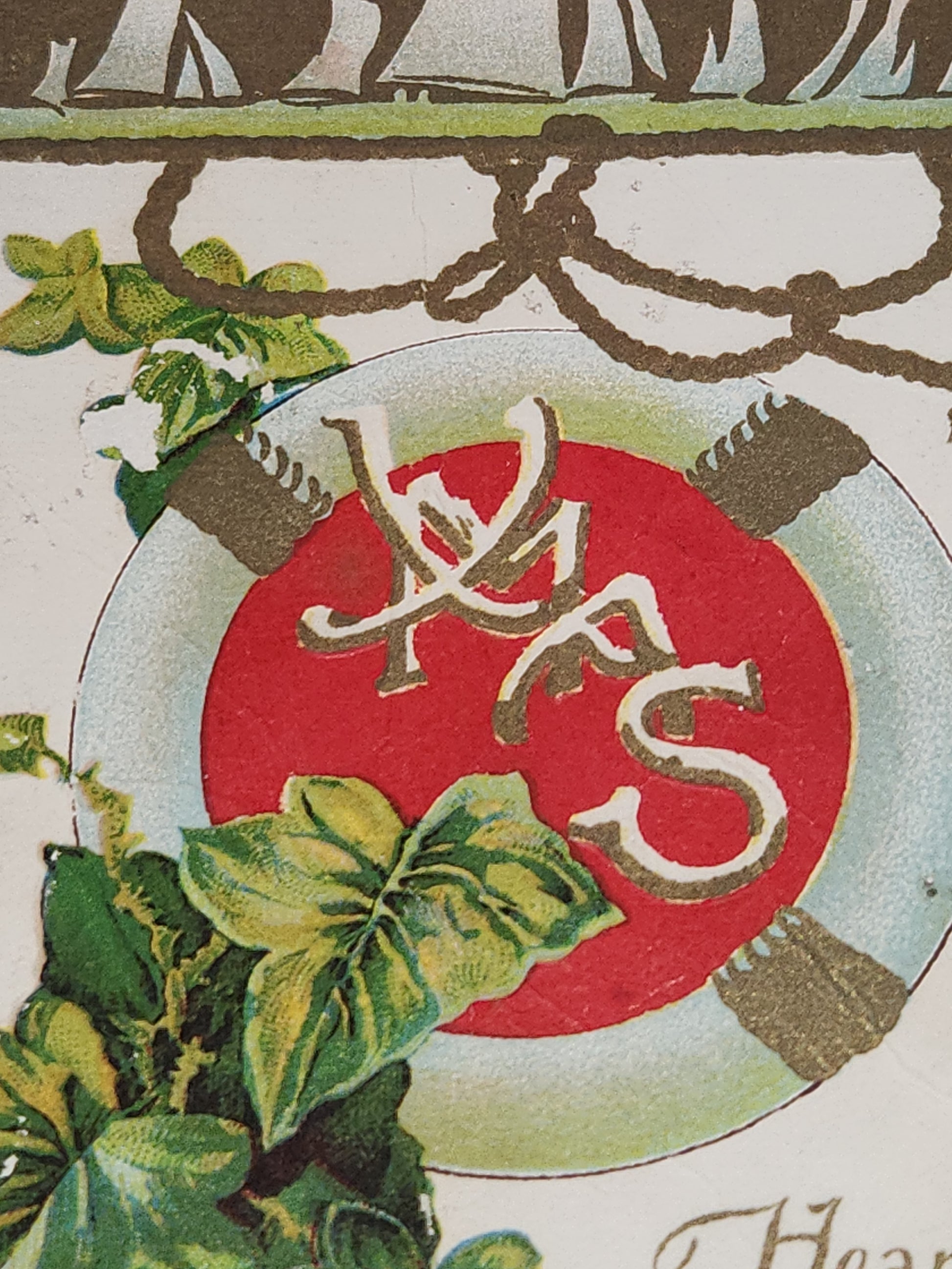 Antique Christmas Postcard Heaty Greetings with Sailboats and Life Preserver 1910 not mailed pc66