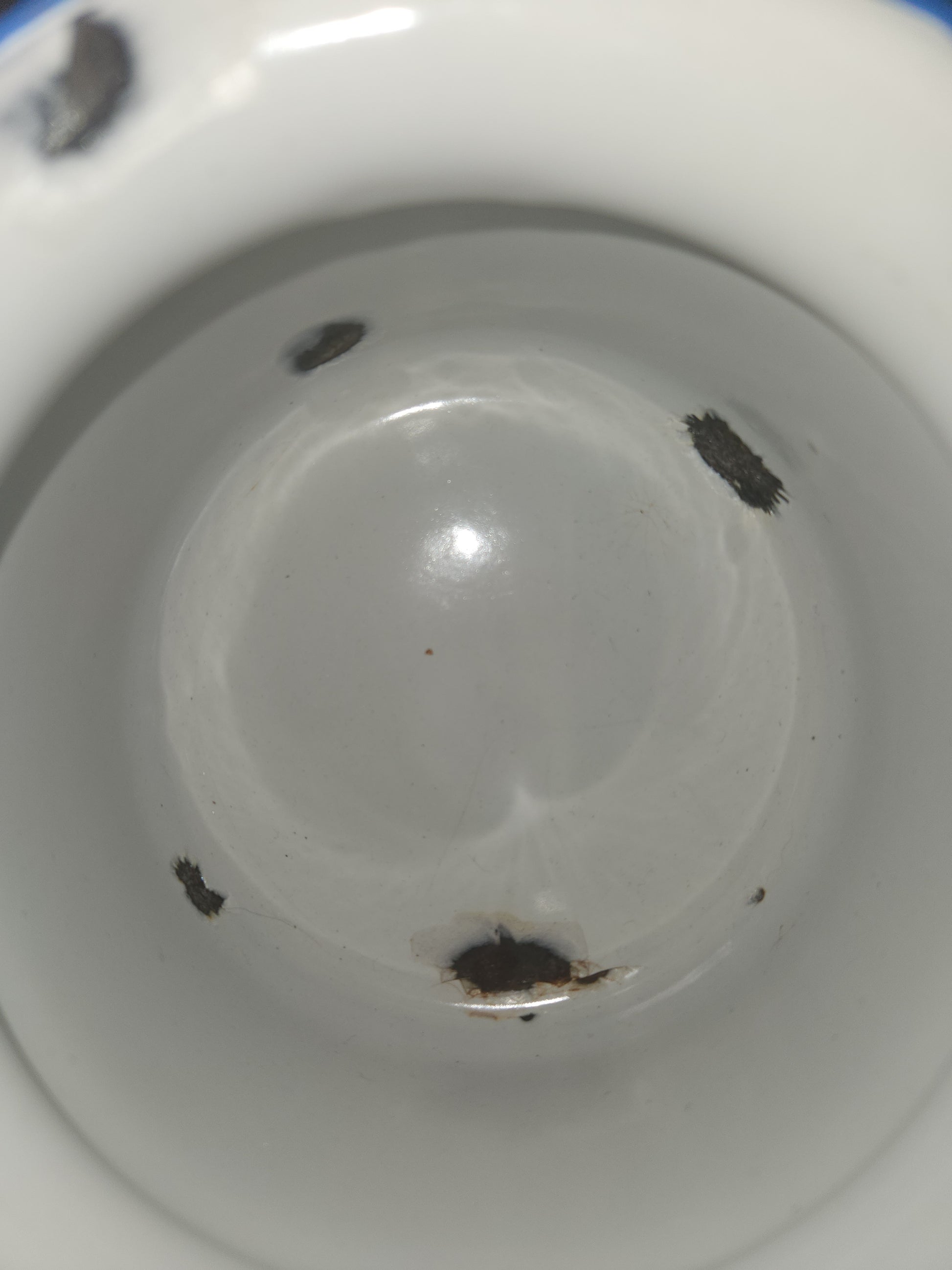 Antique enamel enamelware childrens chamber pot white with lighter blue trim enm8