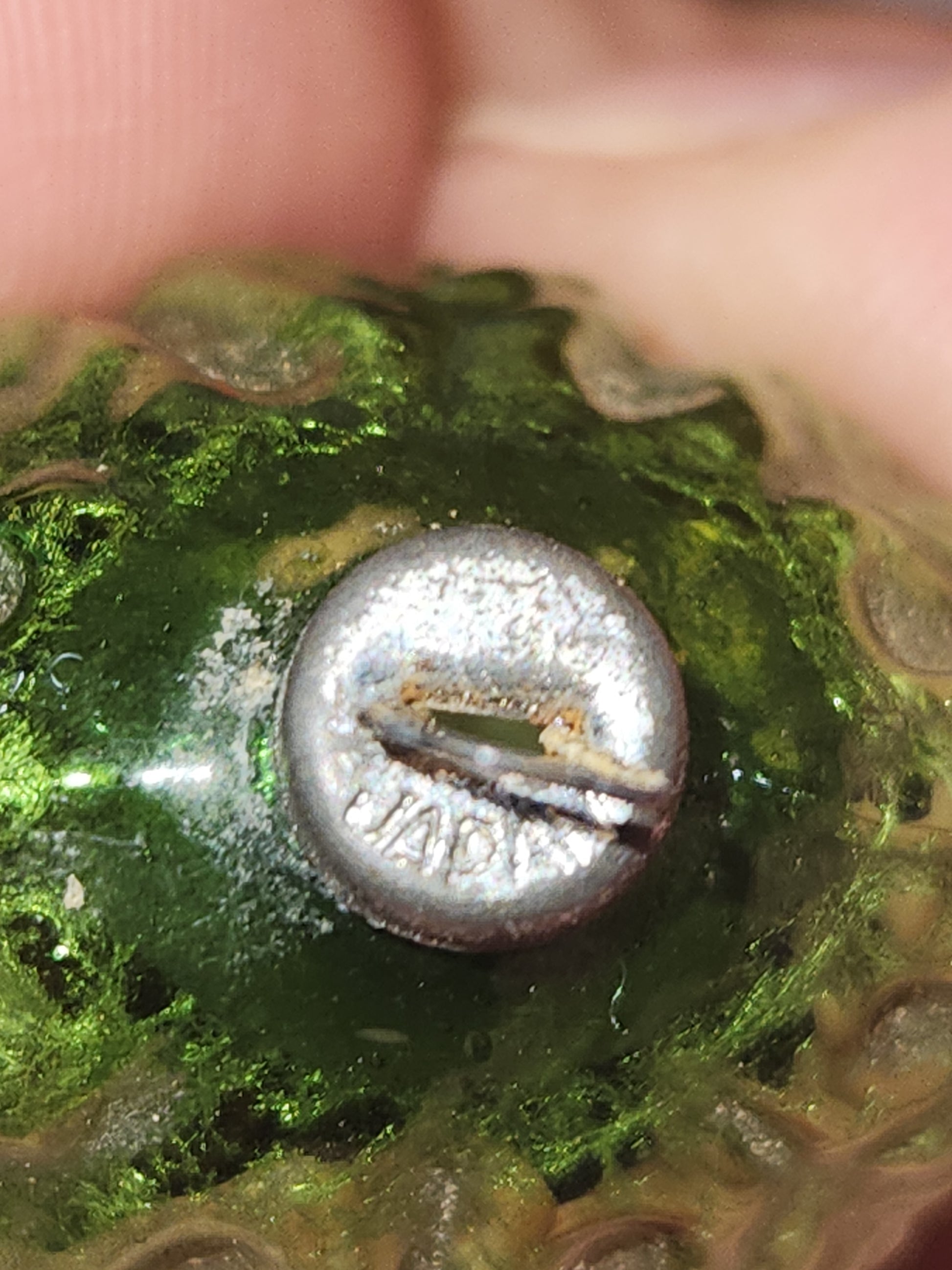 This ornament is in fair condition with no cracks or chips. It is not silvered. Cap says Japan. It is 2" to top of hanging loop and 1 2/16th " wide. When buying vintage ornaments please understand they can have crackling, crazing, discoloration and paintloss. Please be aware of that before ordering. Please see photos as they are part of the description