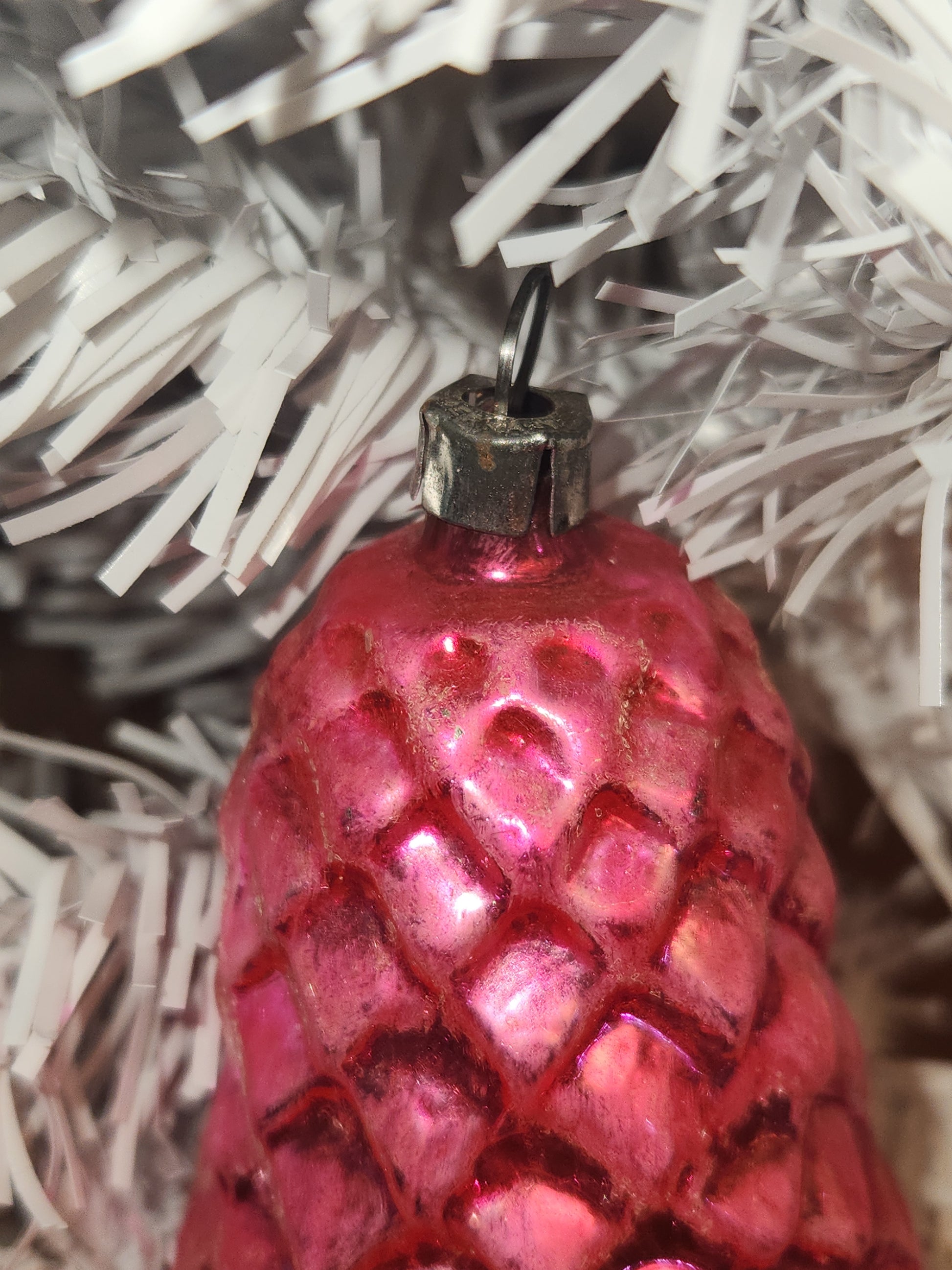 Vintage Antique Pinecone Hot Pink Bell Christmas Ornament Germany GLOWS vo2