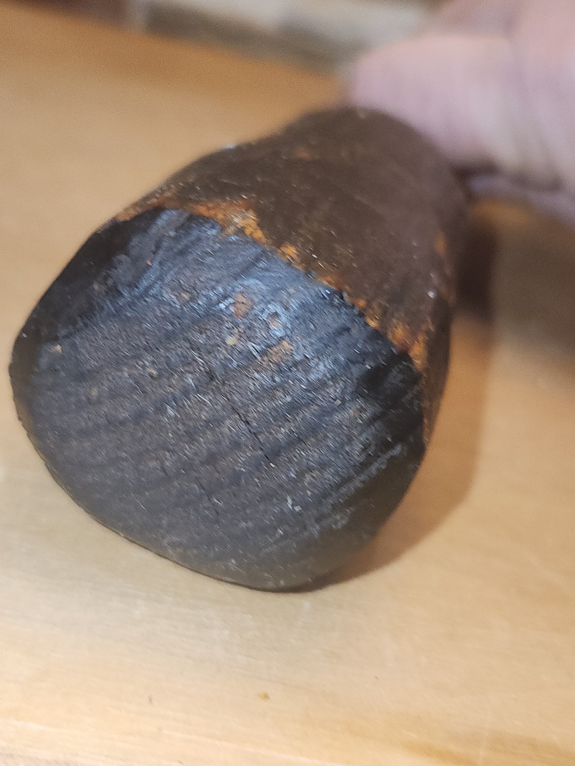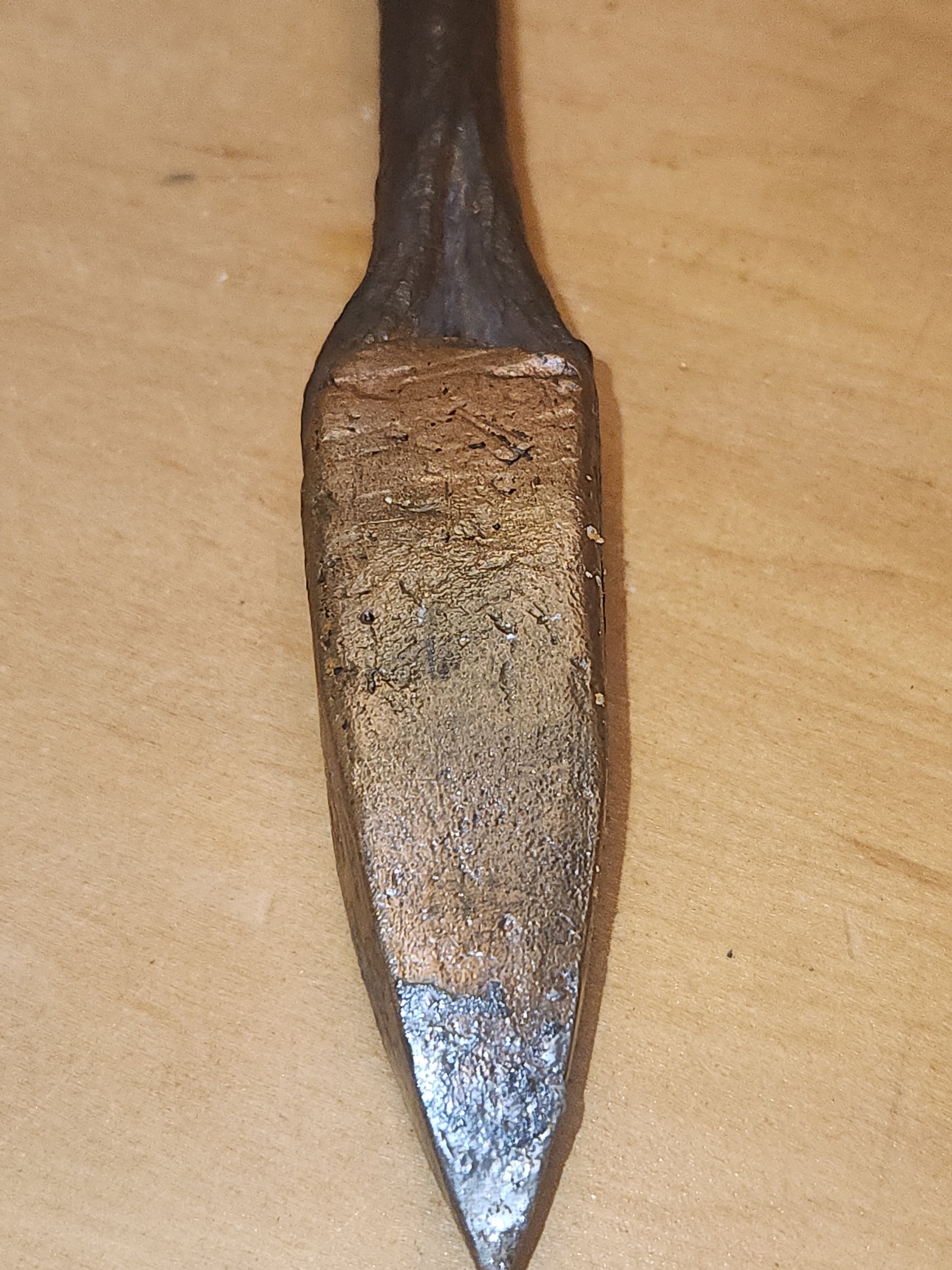 Thjs tool is quite old and has fantastic patina. The handle was hand carved, there are a few spots of paint? The tip was roughly made with a sharp tip and has some divits in the copper. It is 11 1/4" tall and the handle is 1 3/4" in diameter although it is not an absolute circle. Please.\nLook at all the photos as they are part of the description in a good indication of what you will receive