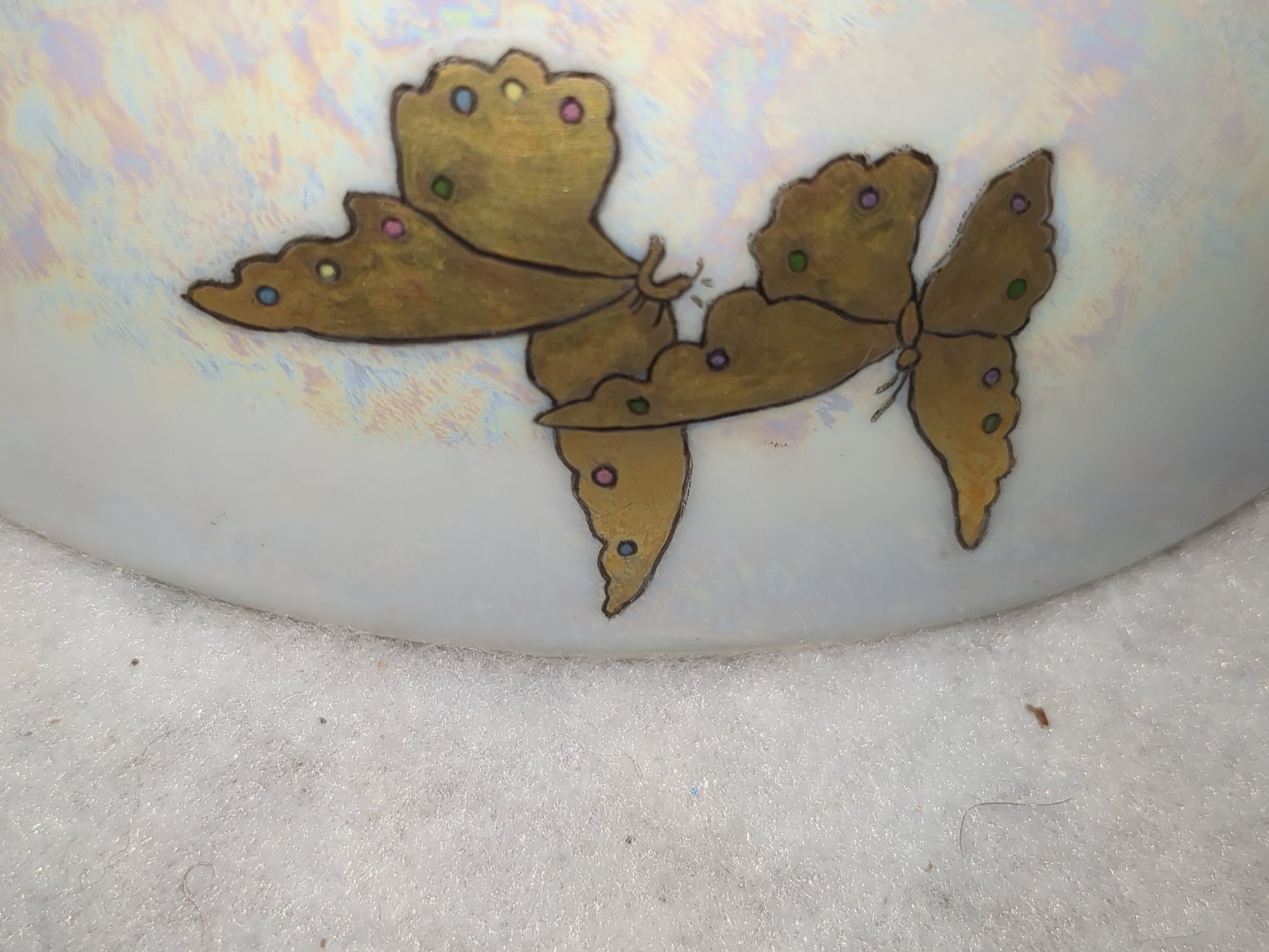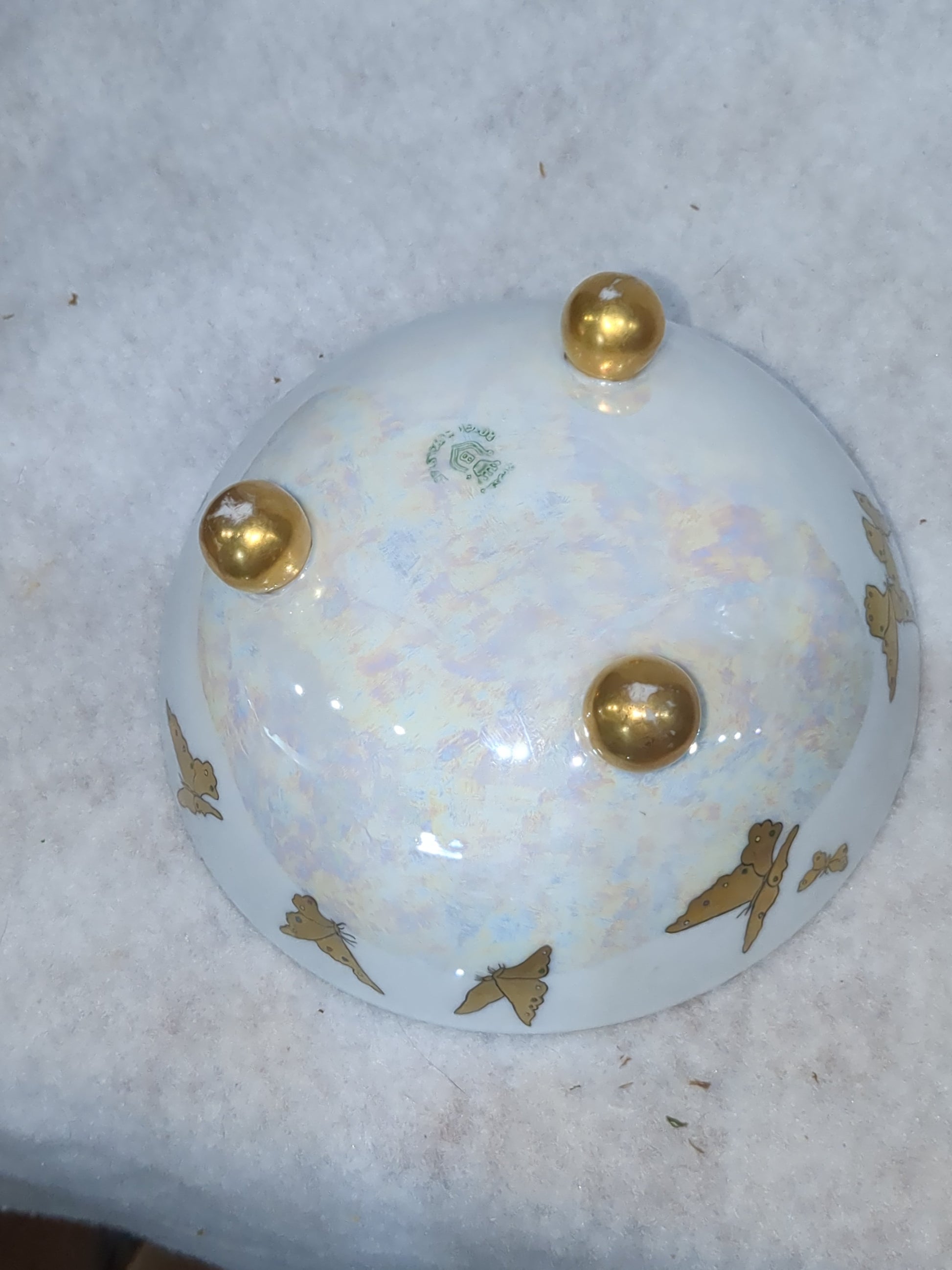 Antique Royal Rudolstadt Prussia iridescent gold trimmed gold butterfly gold footed bowl bwl54