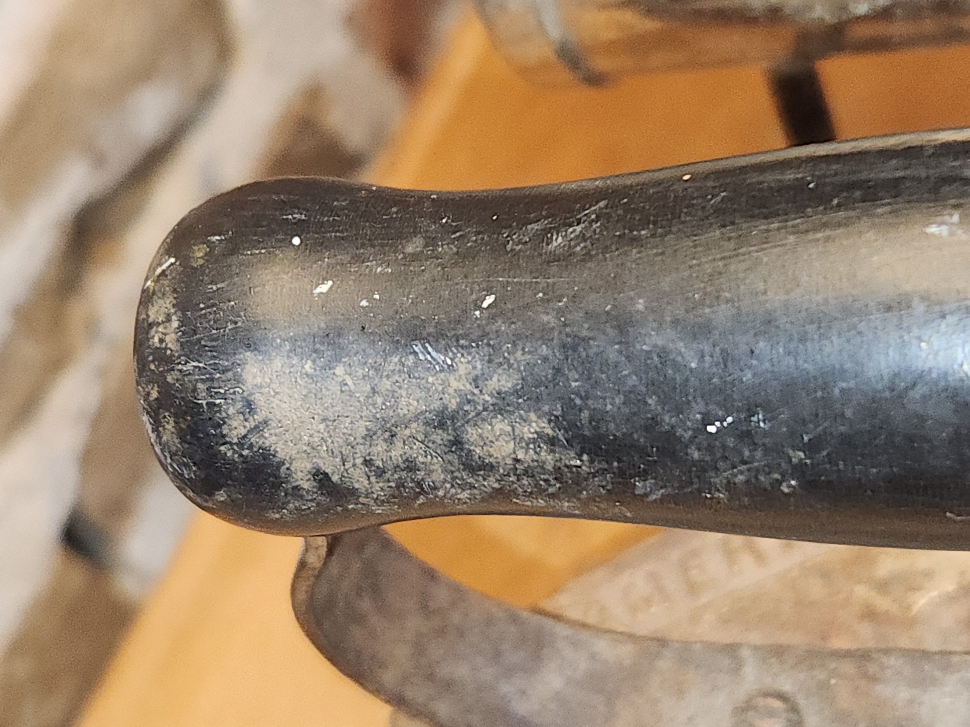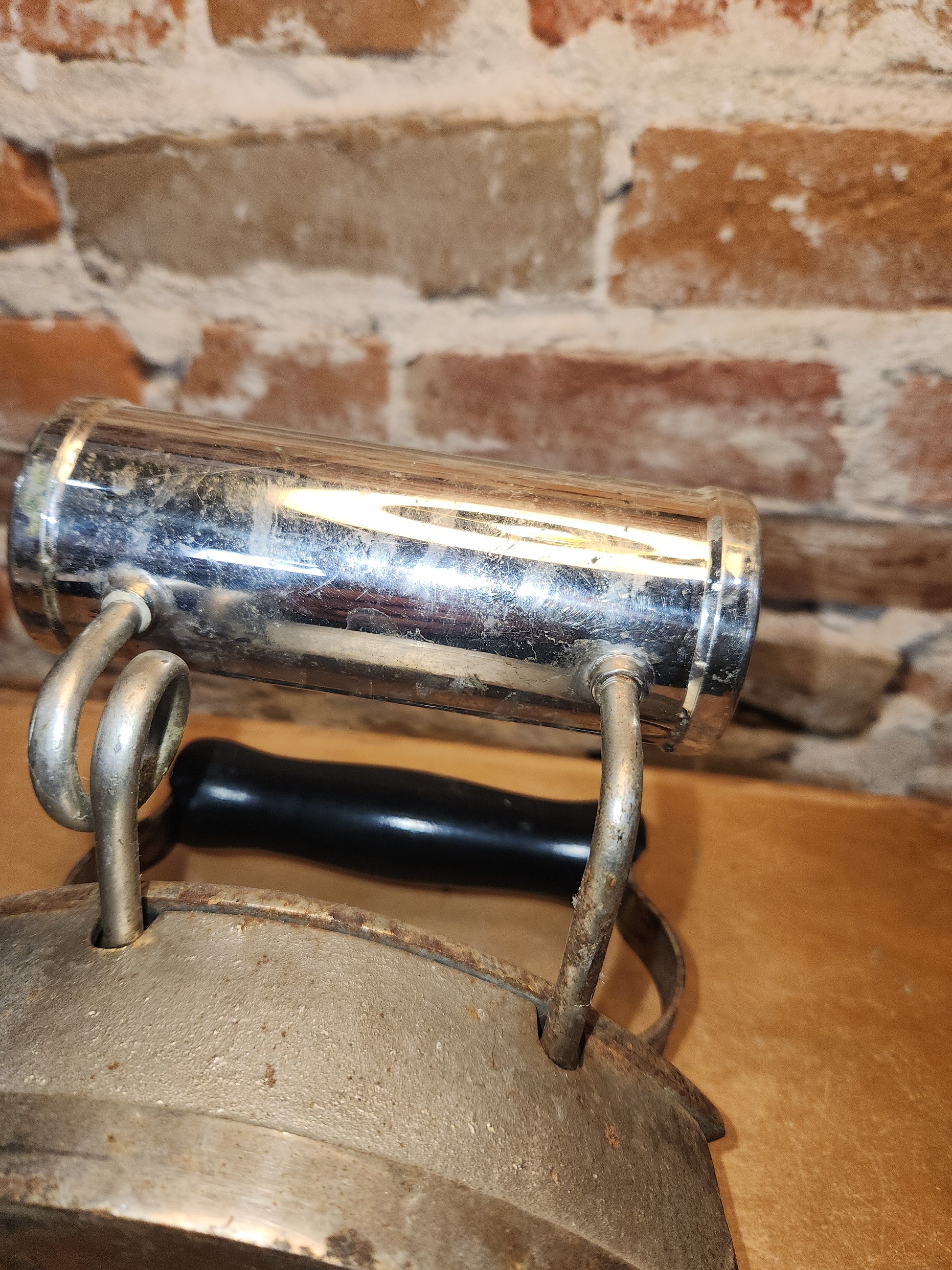 Self Heating Sad Iron has Embossed American Gas Machine Company and Patented Nov 5 1912. It is 5 3/4" tall x 7 1/4" wide x 6 1/4" deep. It is untested comes as is. This iron is heavy! There is wear and scratching on the handle. There is rust throughout creating a fantastic patina. Please see photos as they are part of the description