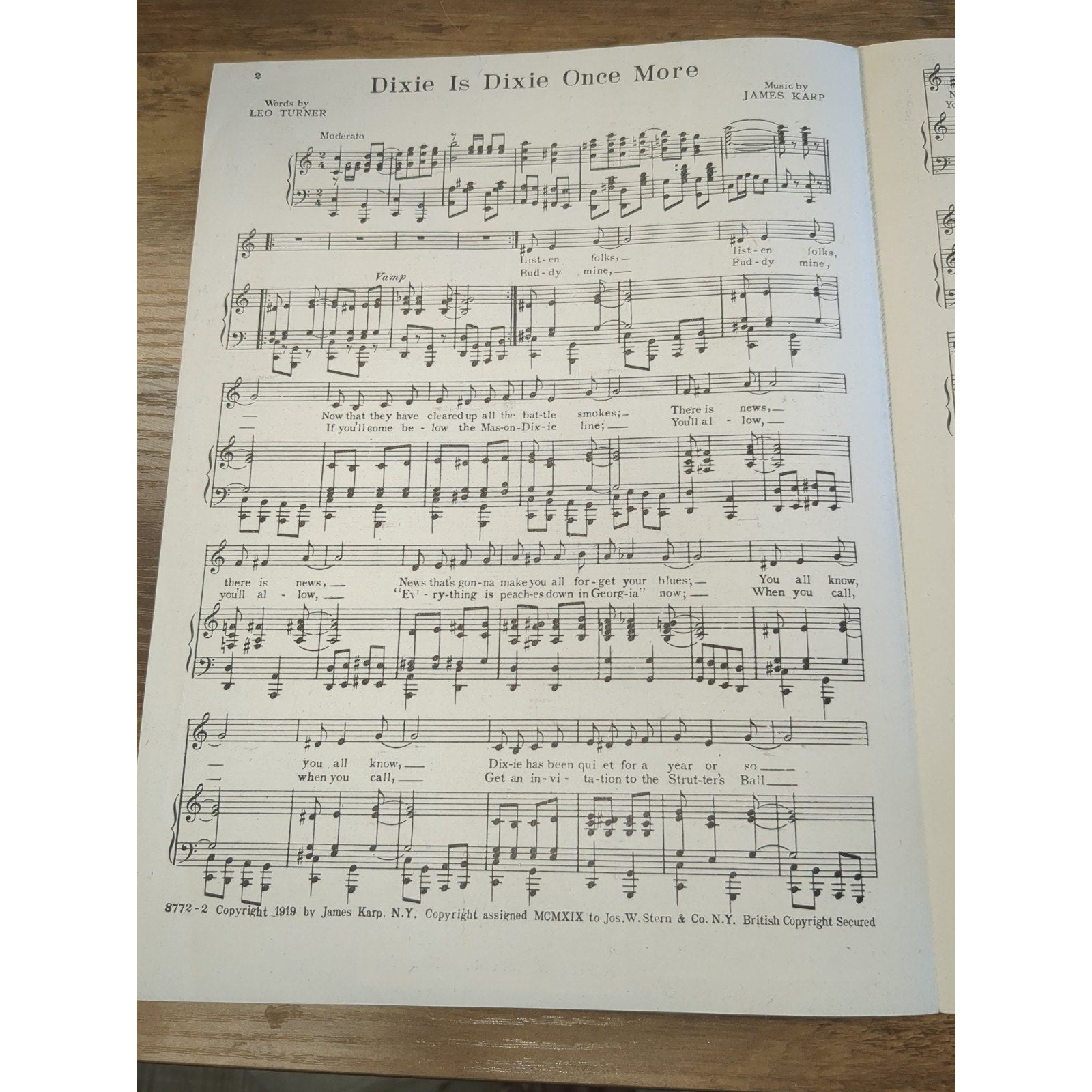 Antique Sheet Music 'Dixie is Dixie Once More' 1919 Leo Turner & James Karp