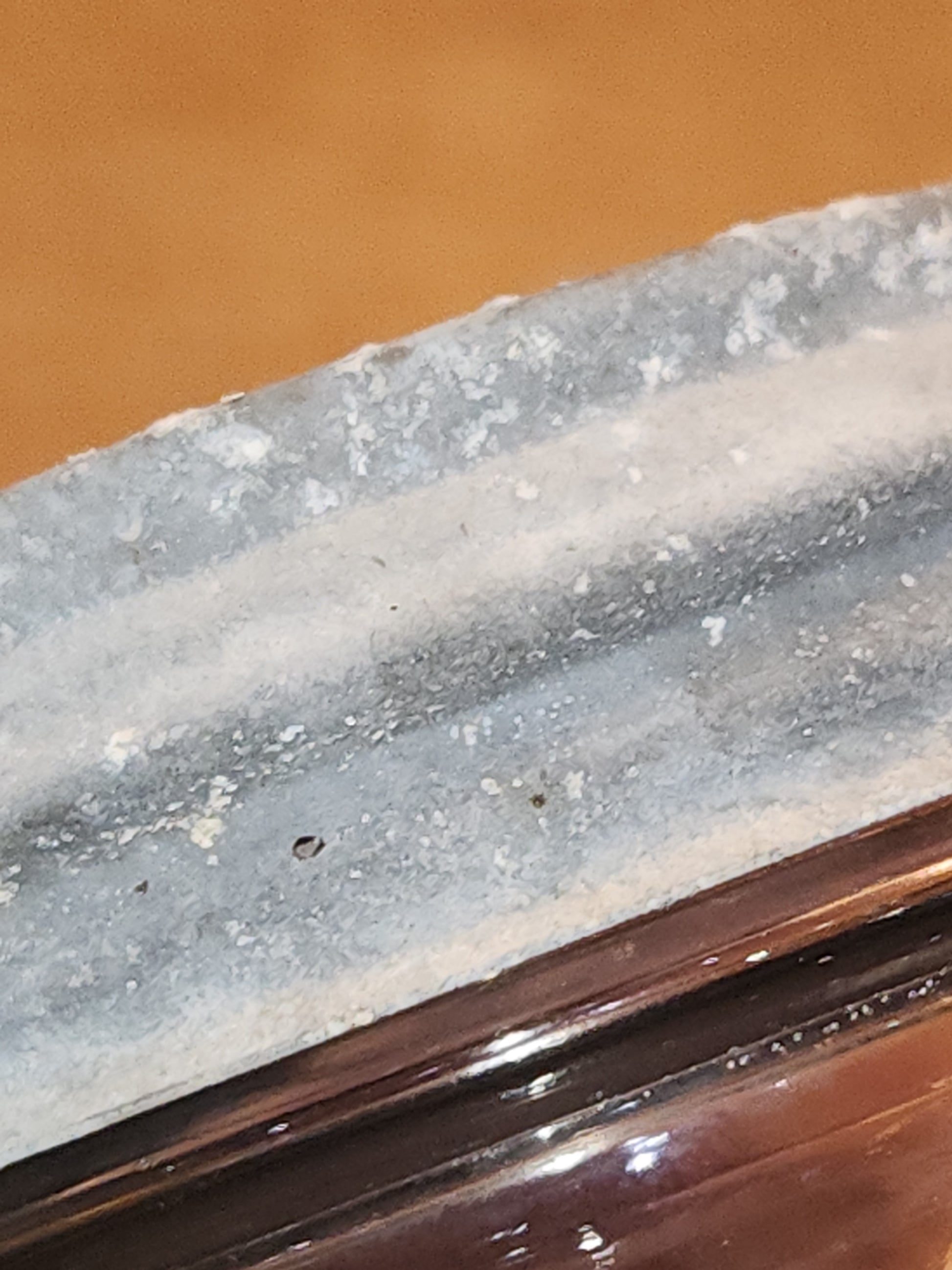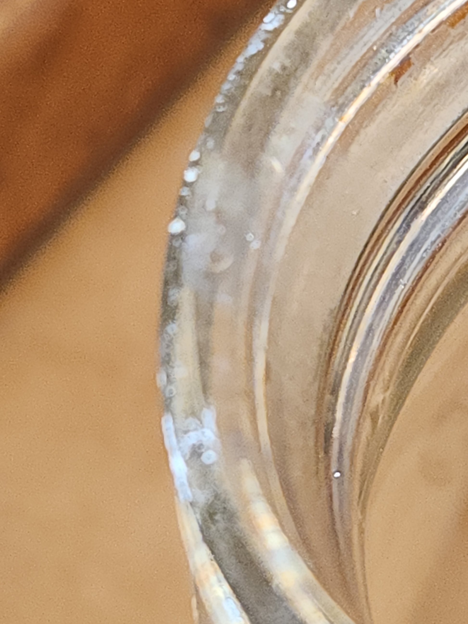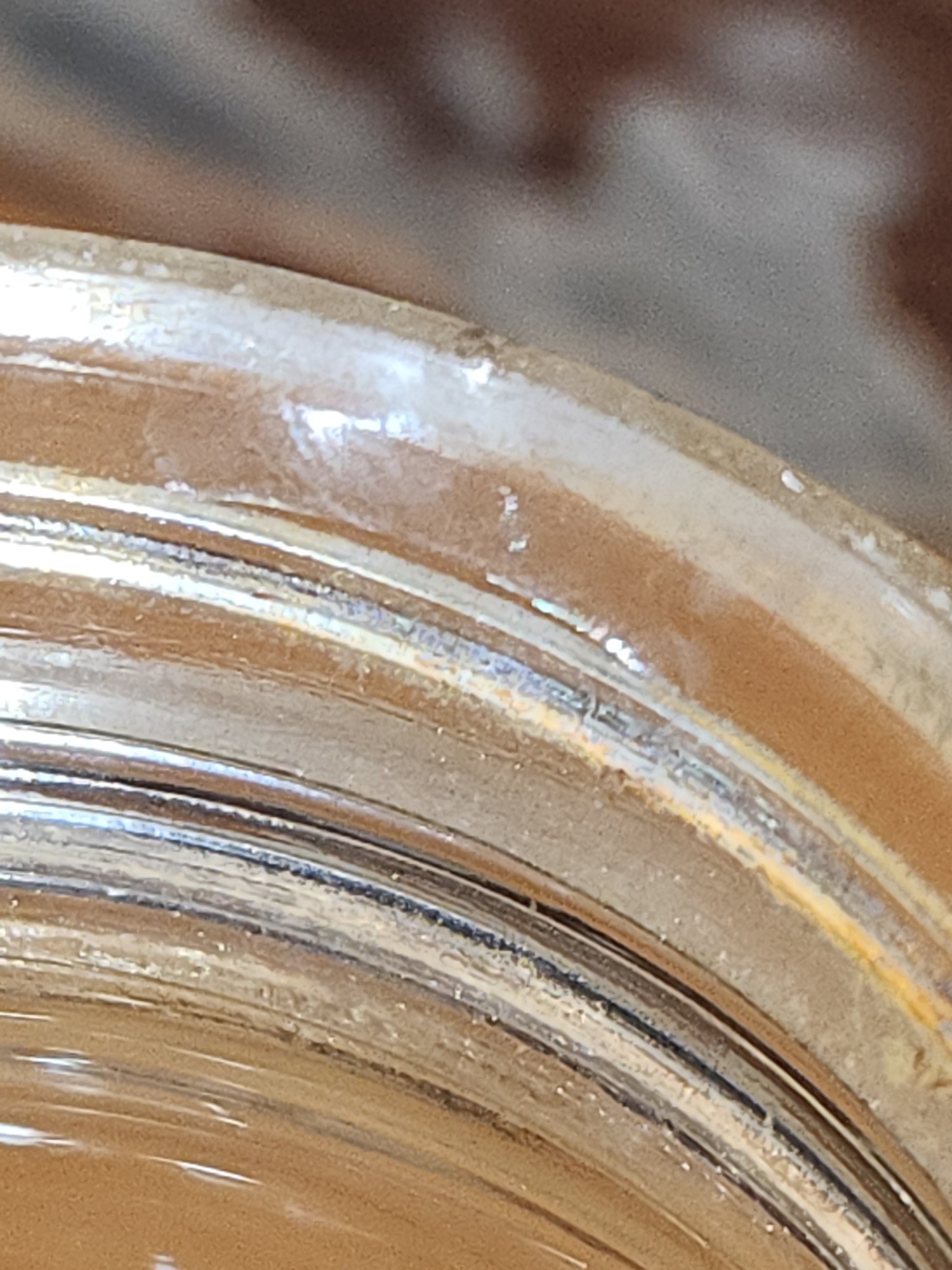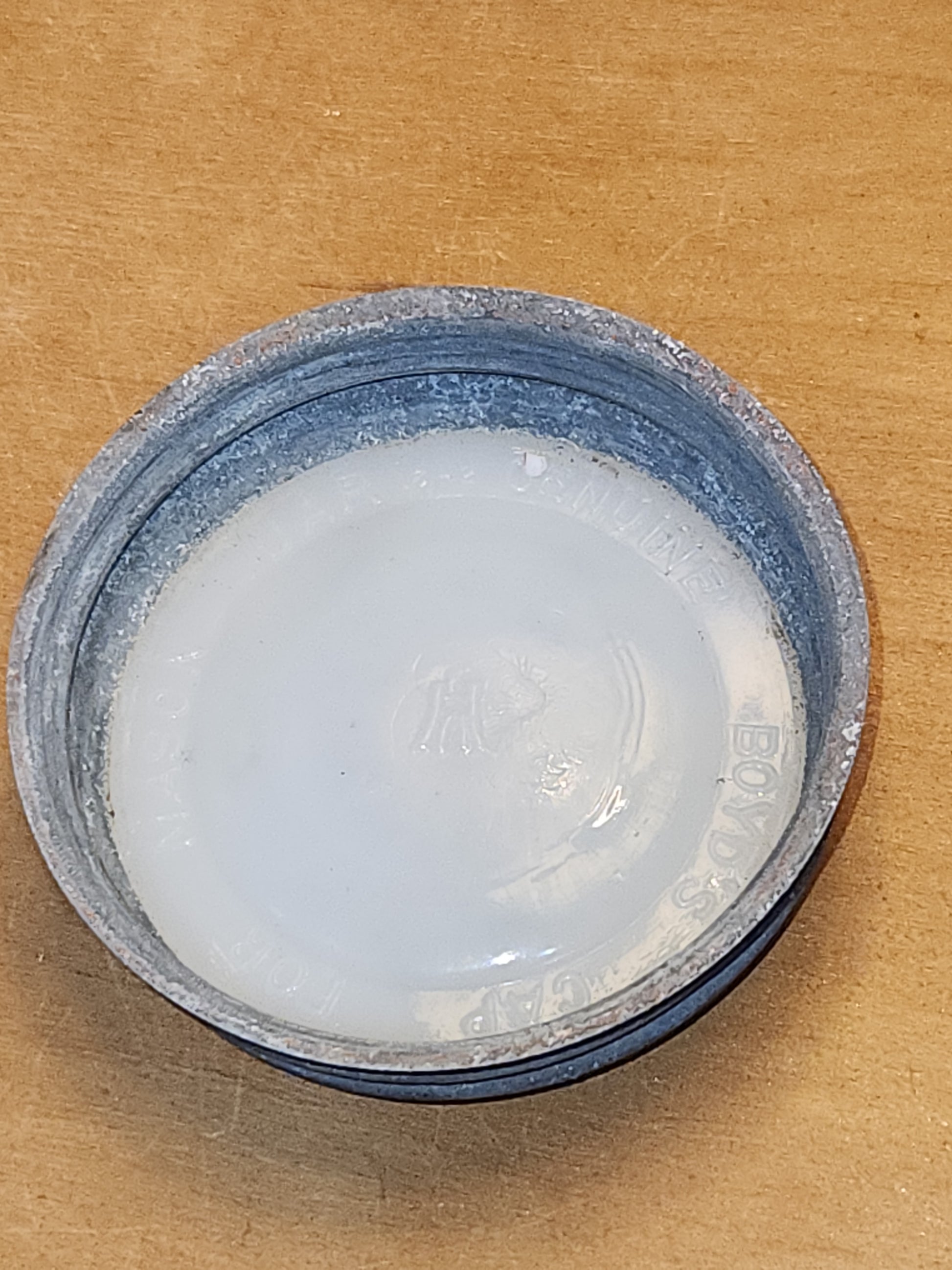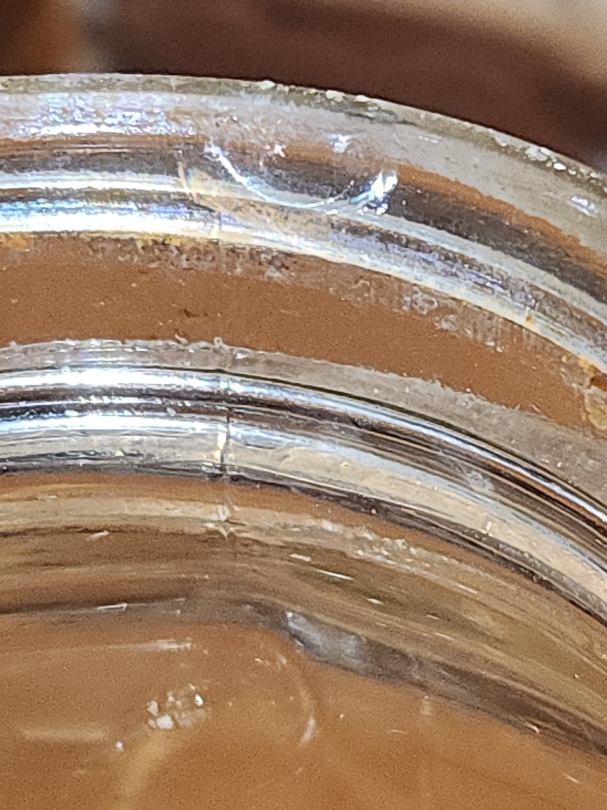 Jar is in good condition with no large chips or cracks. The top of the jar mouth is rough and one very small chip. There are 2 areas in the mouth area that look like chips, but they are smooth and likely bubbles, the very small chip is near this. Please see photos of this. Please see all photos as they are part of the description