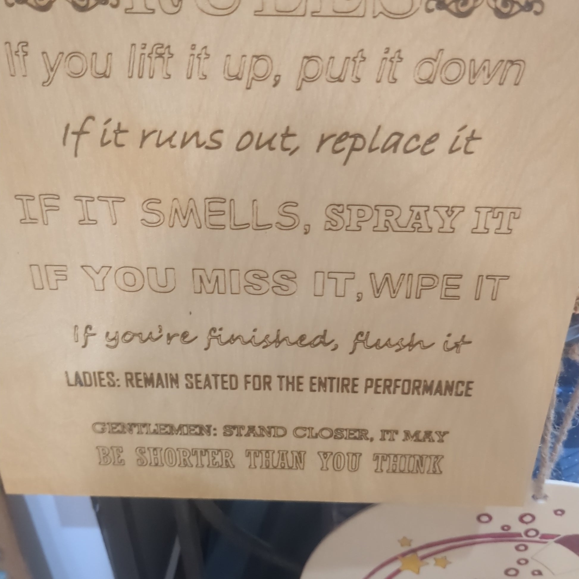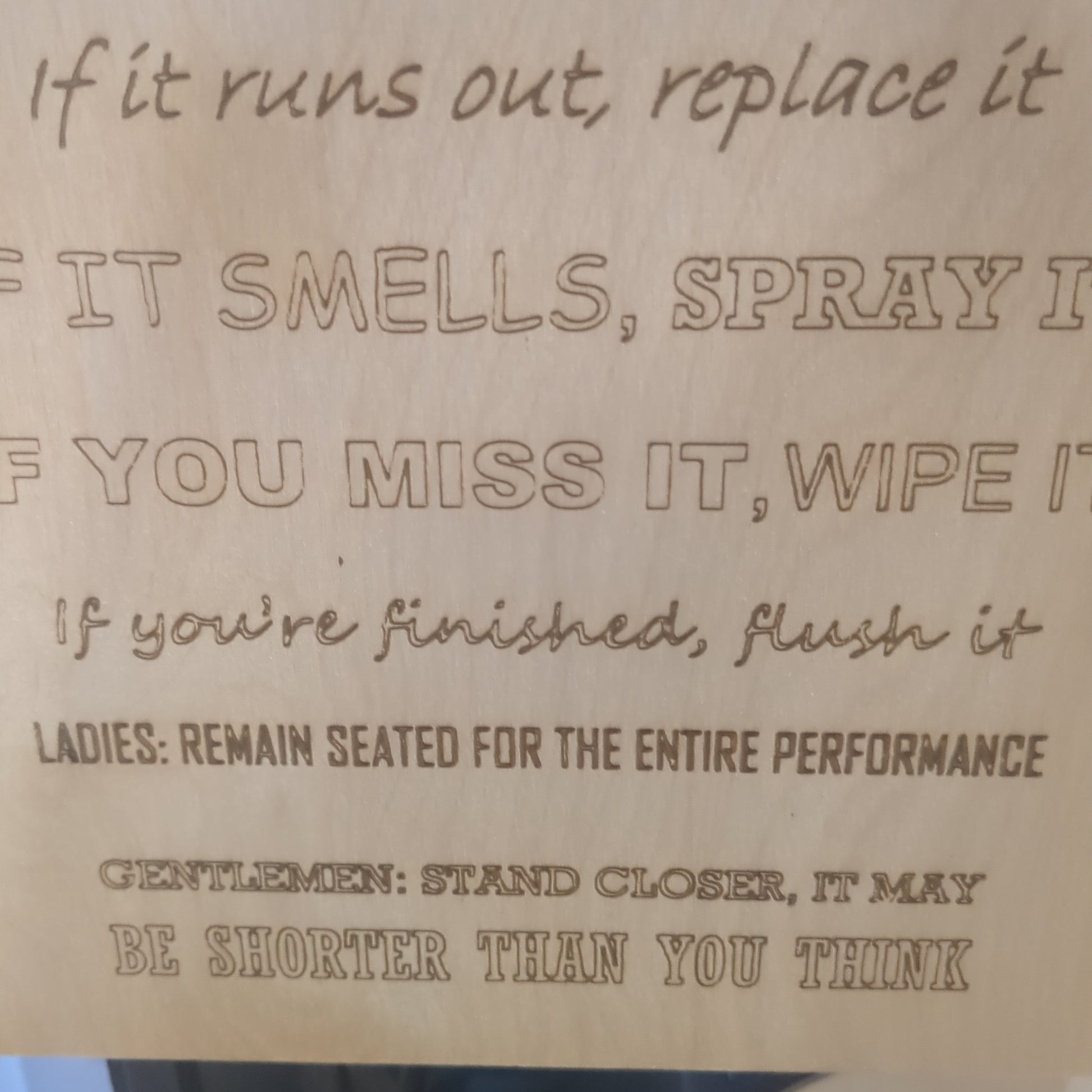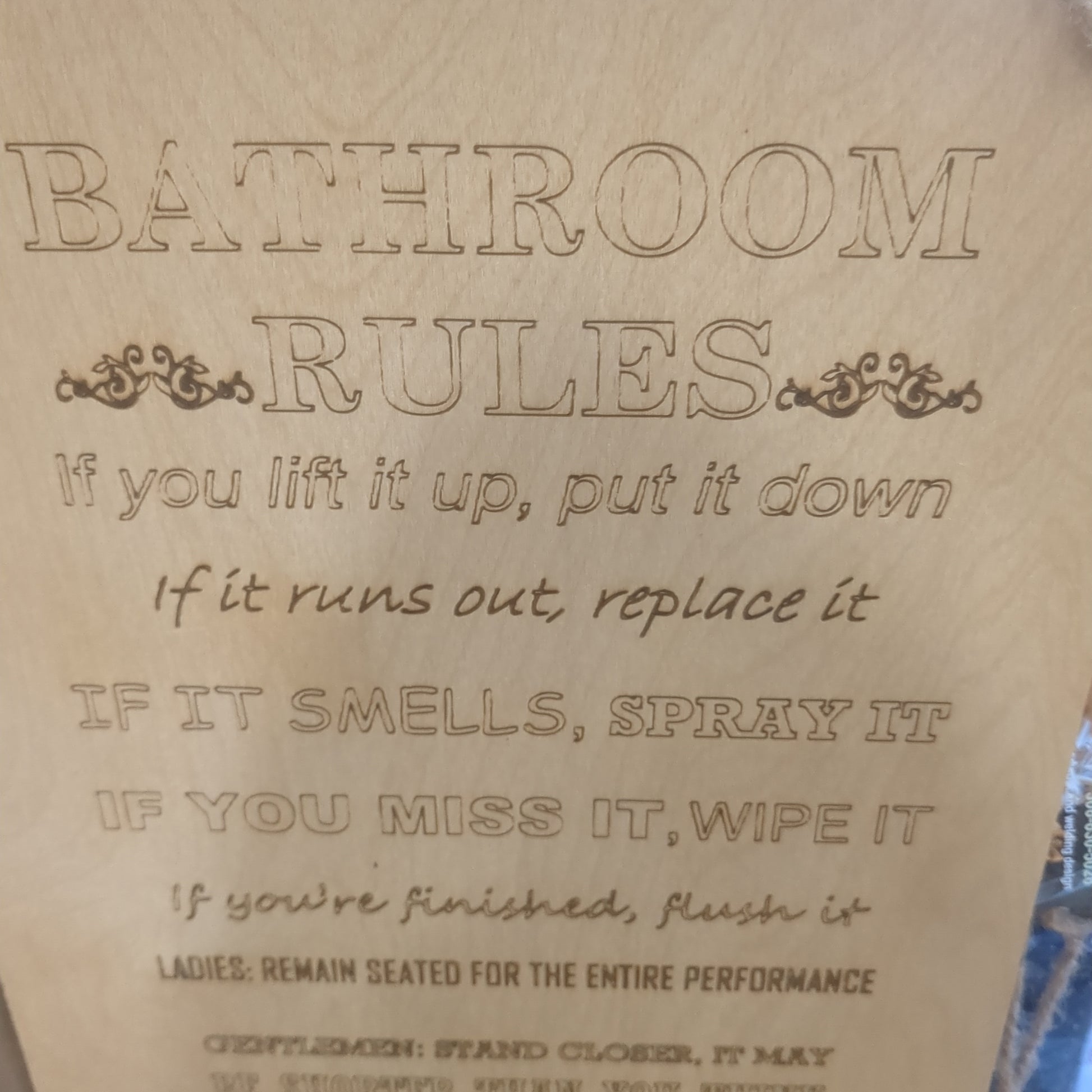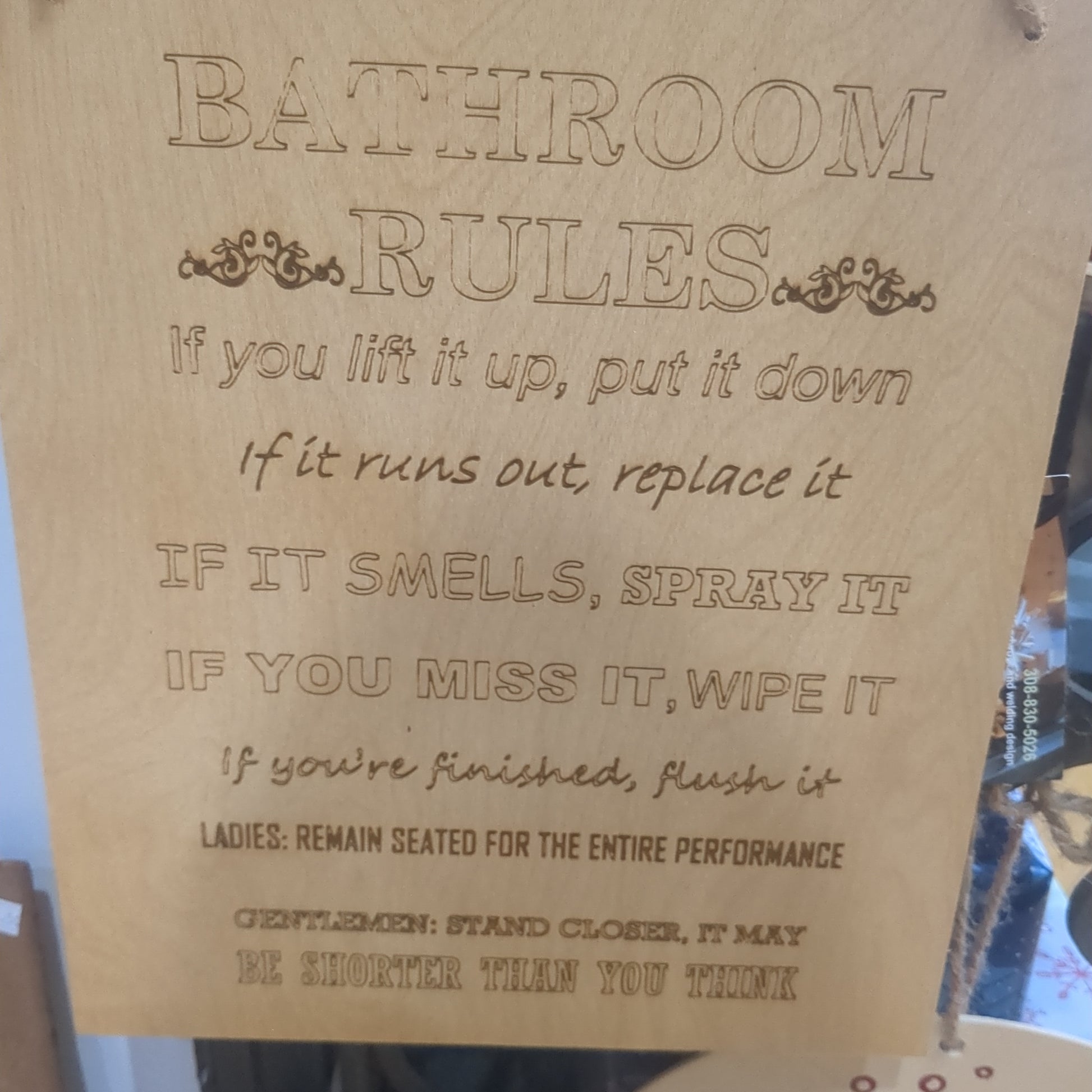 Bathroom sign very funny gets the point across made here at the Cozy from 4th inch plywood. Approximately 12x14 in