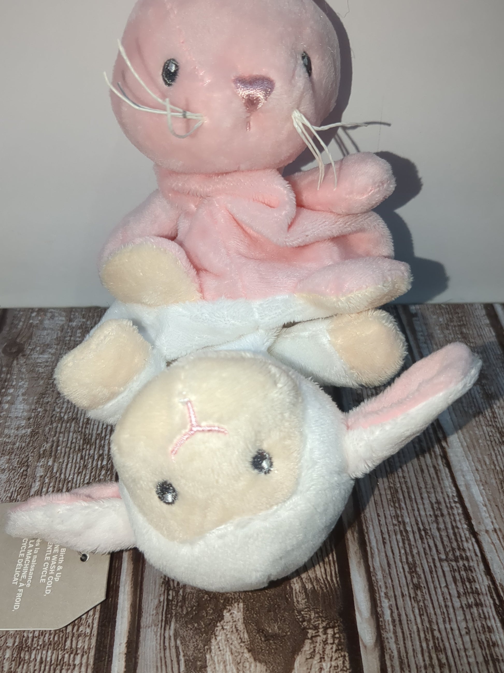 This cute and so soft plushie is a bunny but if you flip the bunny inside out he becomes a sheep and vice versa. Two animals in one! Babies find this hilarious.