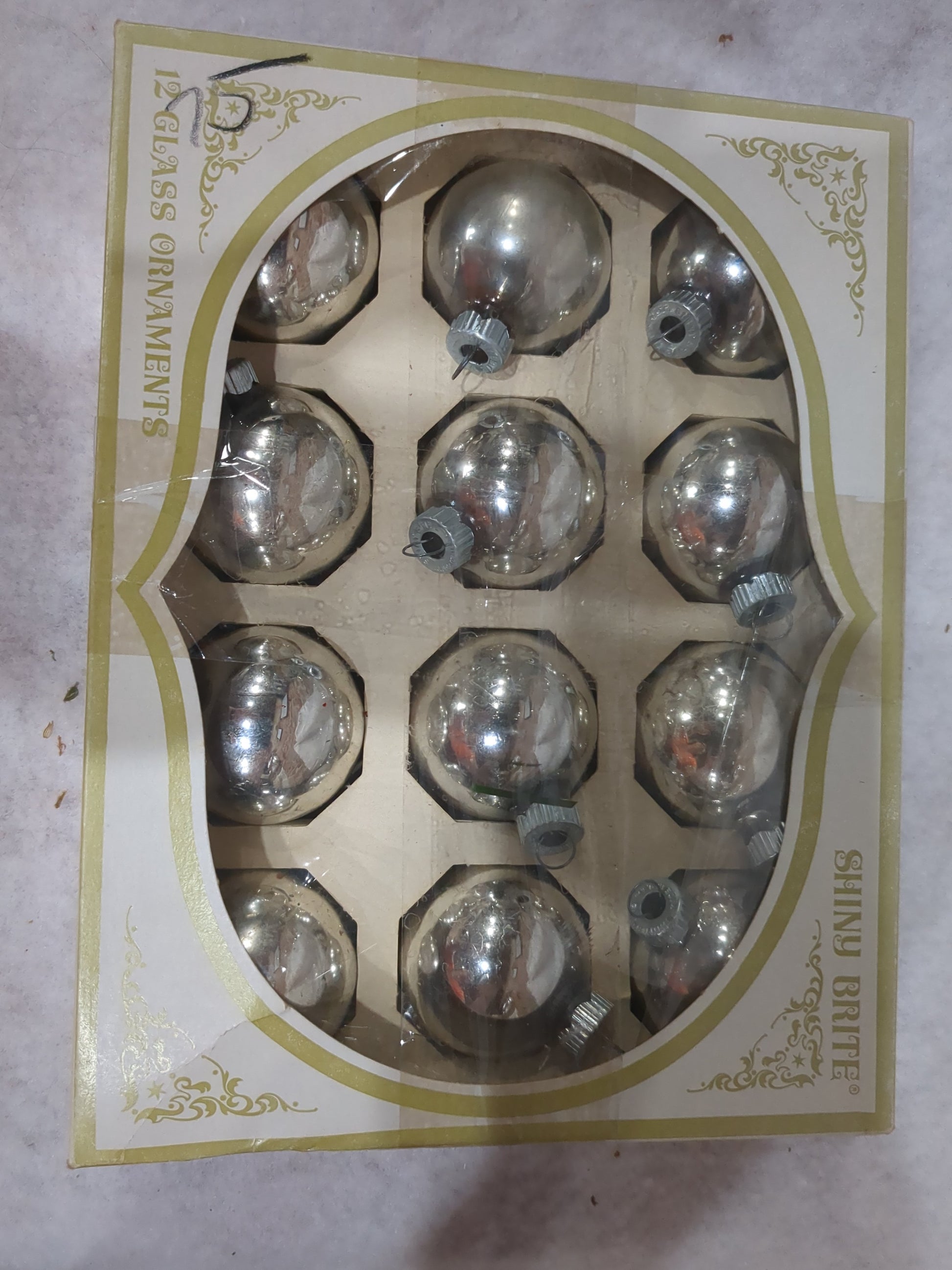 box of Shiny Brite silver ornament 1 1/2" bo5