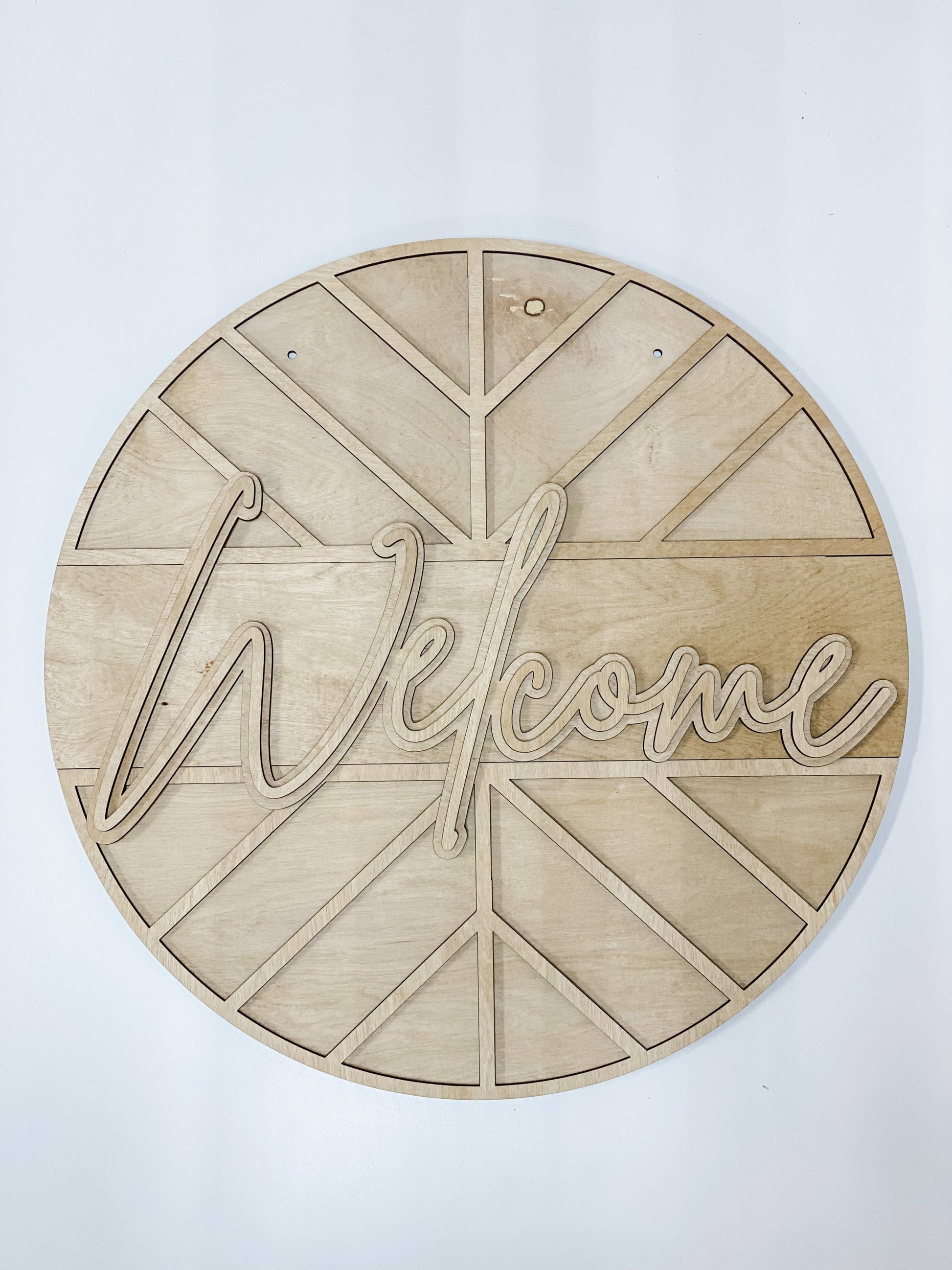 16" Circle topped with an awesome Boho Welcome themed design. Ready for you to paint and assemble. Price does not include paint, glue, ribbon or jute for hanging or brushes.