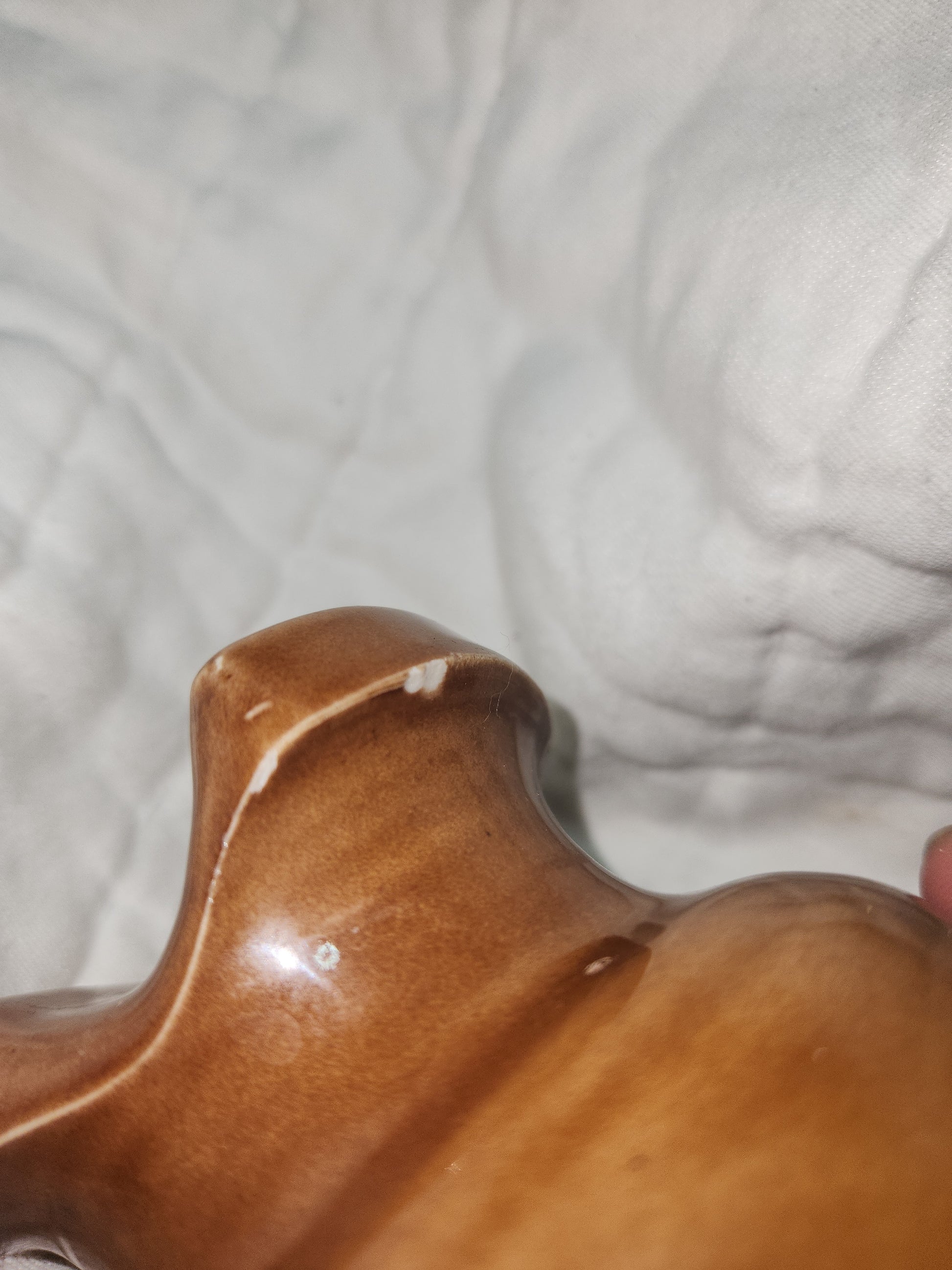 This insulator is in good shape with two very small chips and one chip under top rim. It also has a scratch. . It is marked with B in an oval. It is 3.5” X 3.75” X 3” It is a heavy guy. Please see photos as it is part of the description.