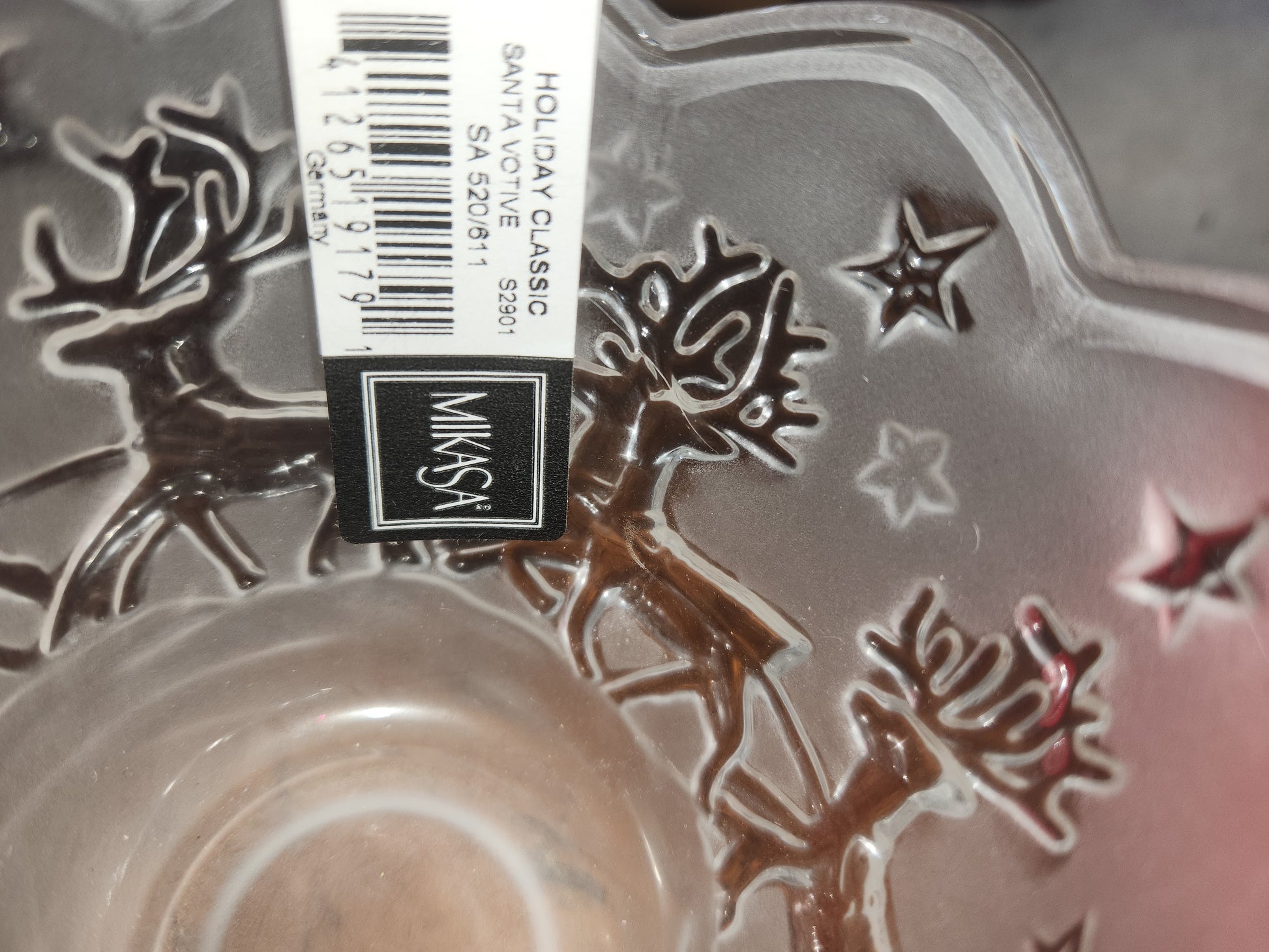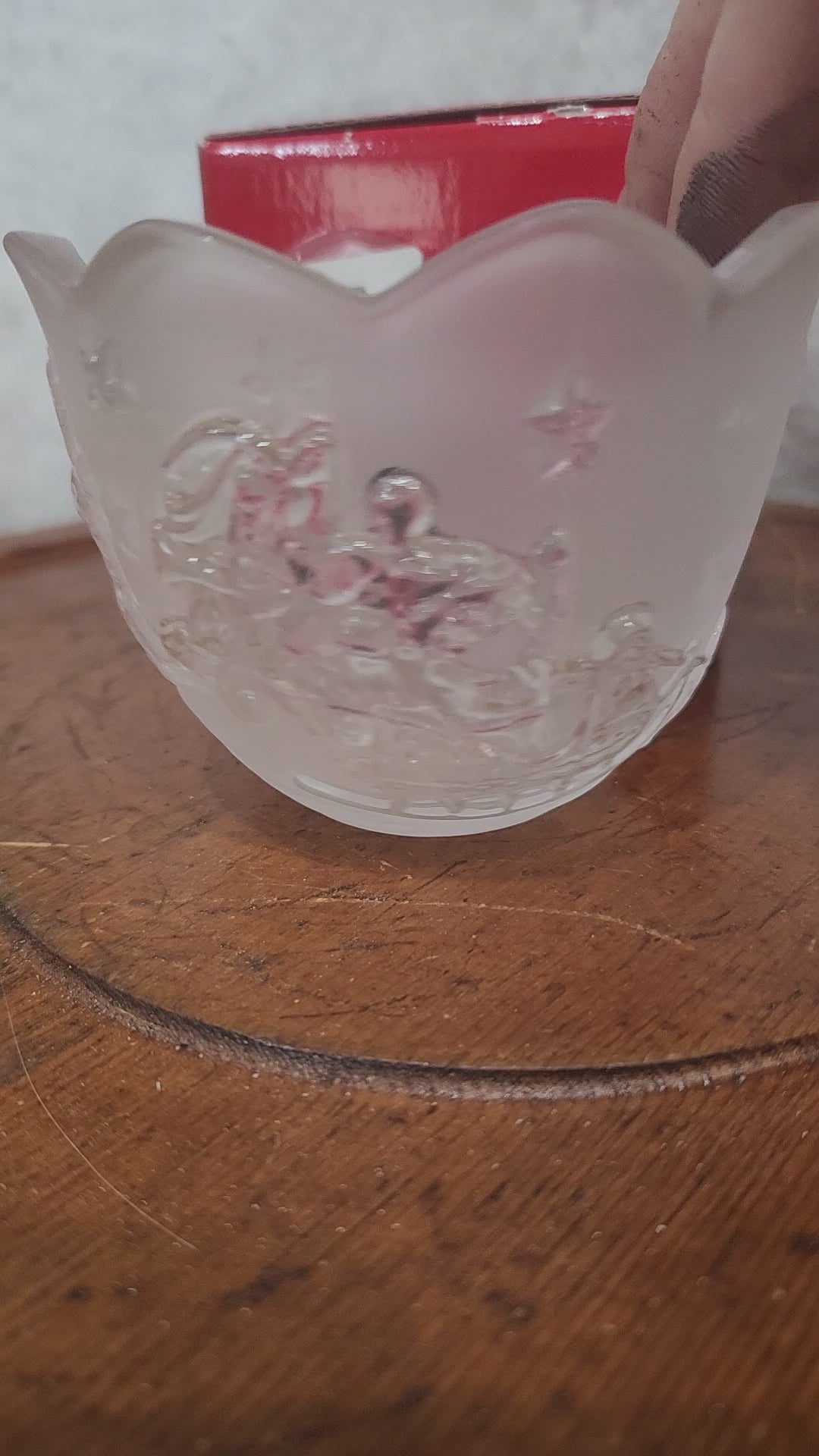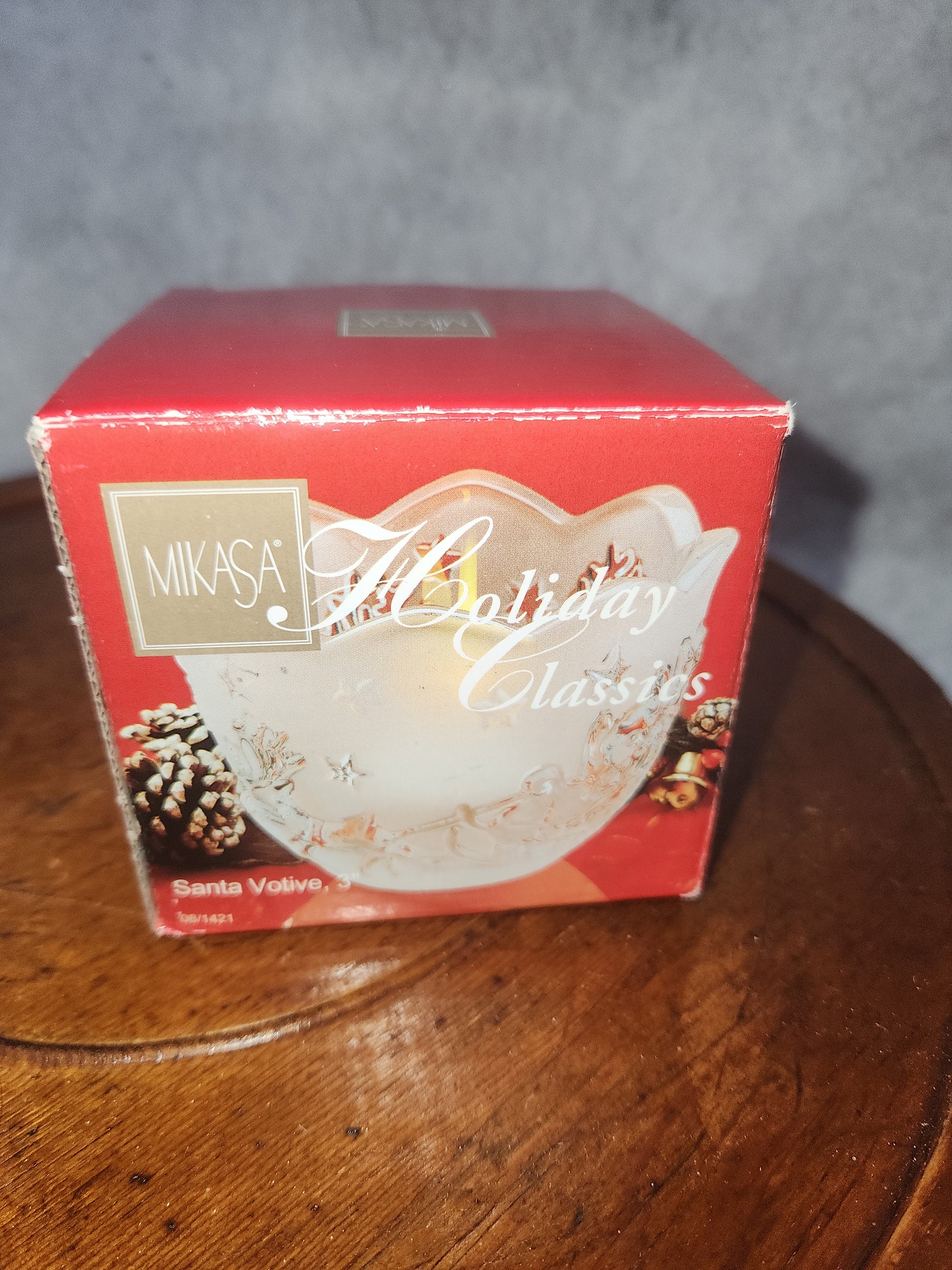 Mikasa votive candle holder, titled "Silent Night". It has frosted glass finish. it has its original sticker and box. it has no chips or cracks it's in beautiful conditions. Please see photos as they are part of the description.