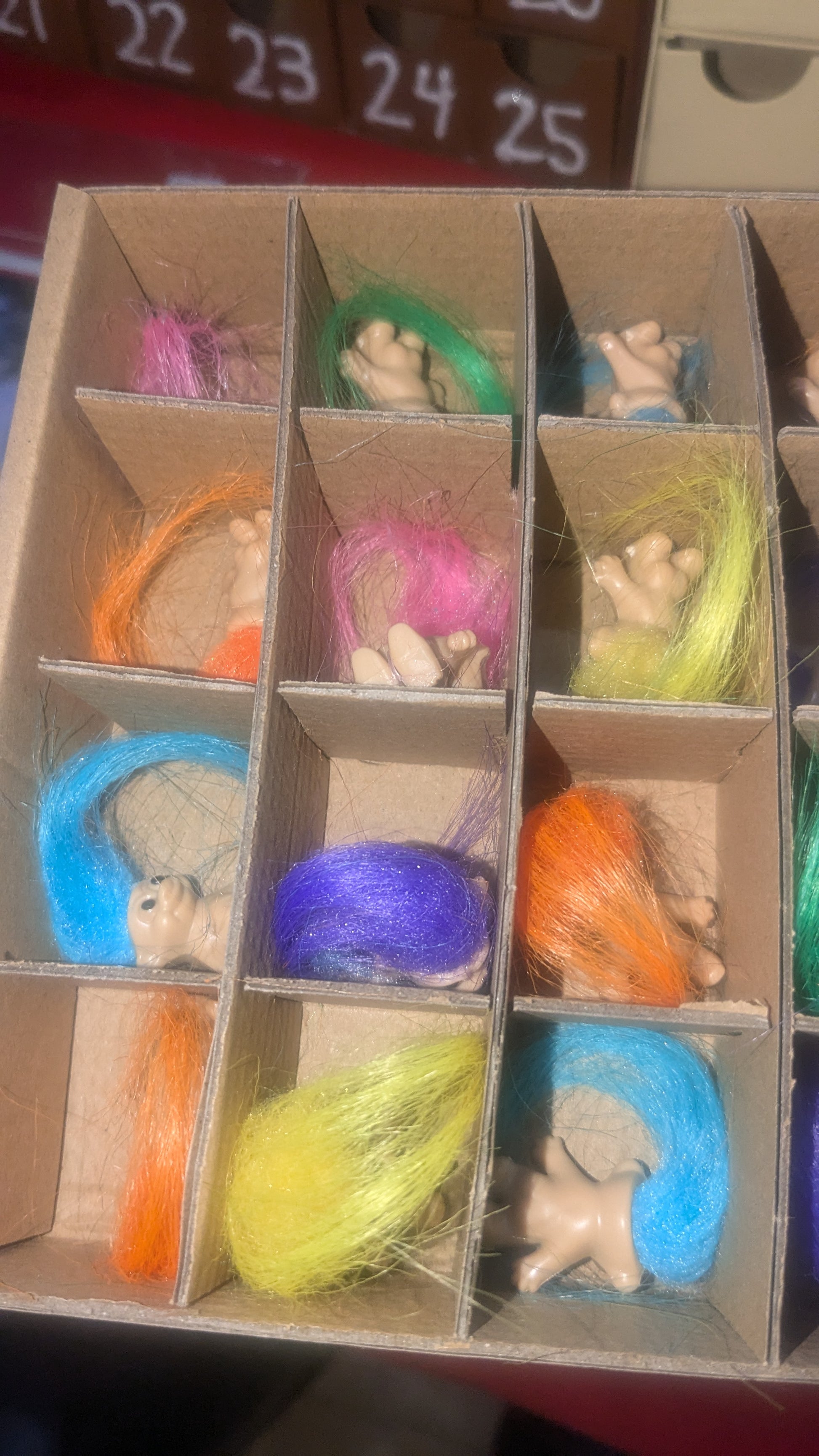 On the outside this box has Santa reindeer and a snowman under each window however is a little mini troll