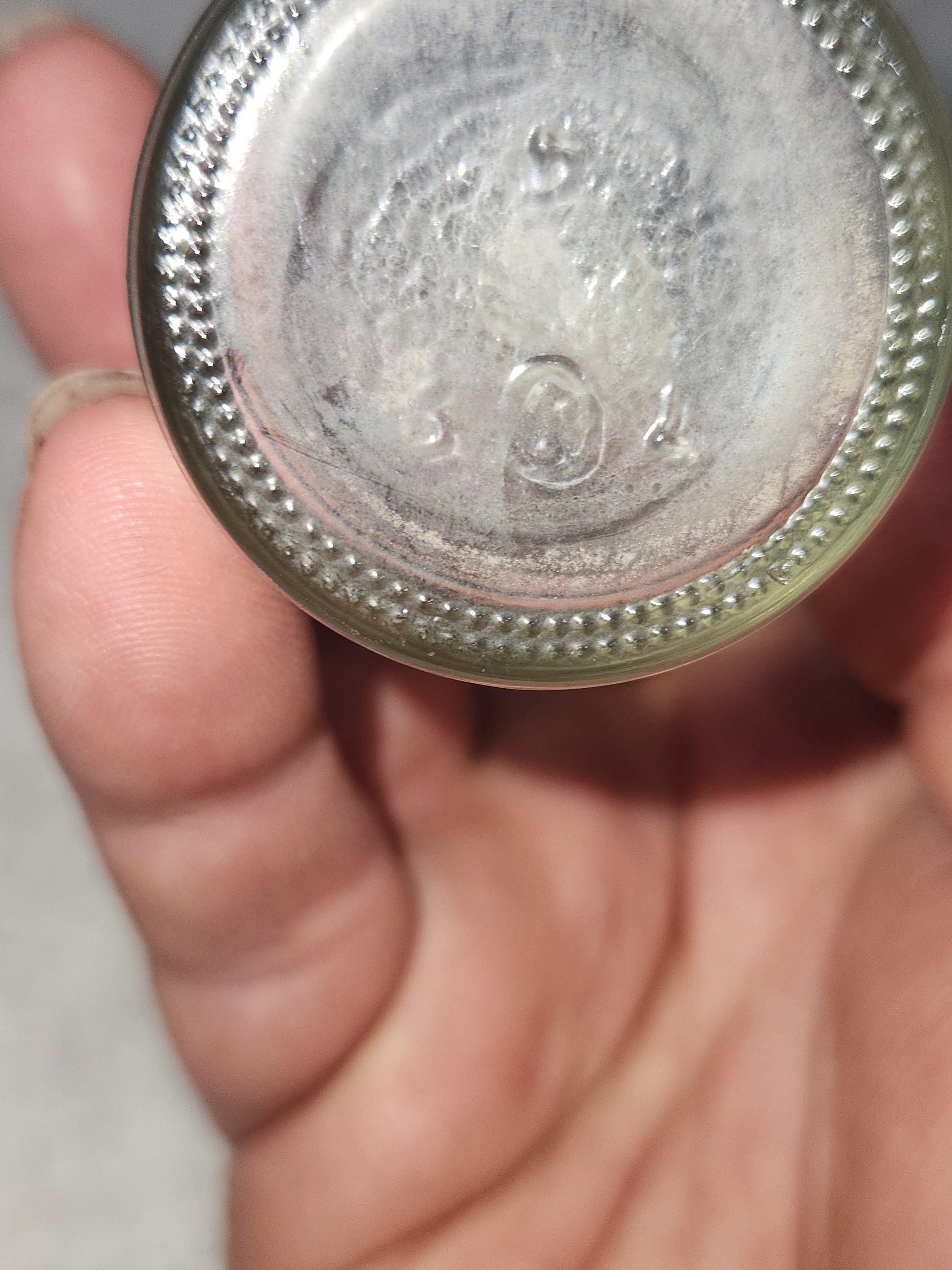 clear glass apothecary type bottle or spice jar with plastic stopper. It is in good condition with no cracks no chips no hazing. It has no makers mark that we can read, but it is vintage and is a little dirtier than the other apothecary jars we have. It is a touch over 4 " tall and diameter at the bottom is 1 1/2" we have another jar that is item g123 this bottle is a little shorter and a little narrower than those bottles