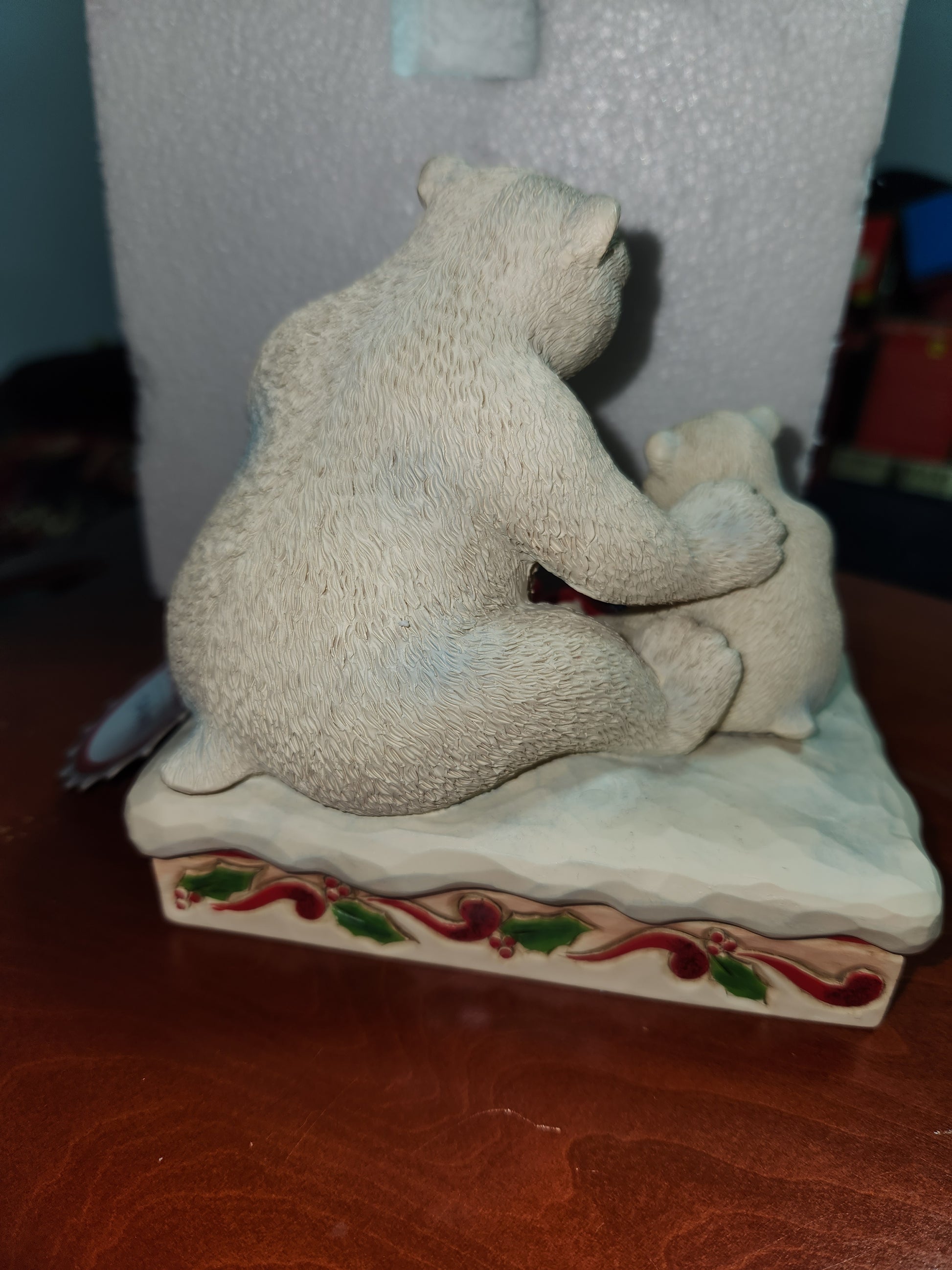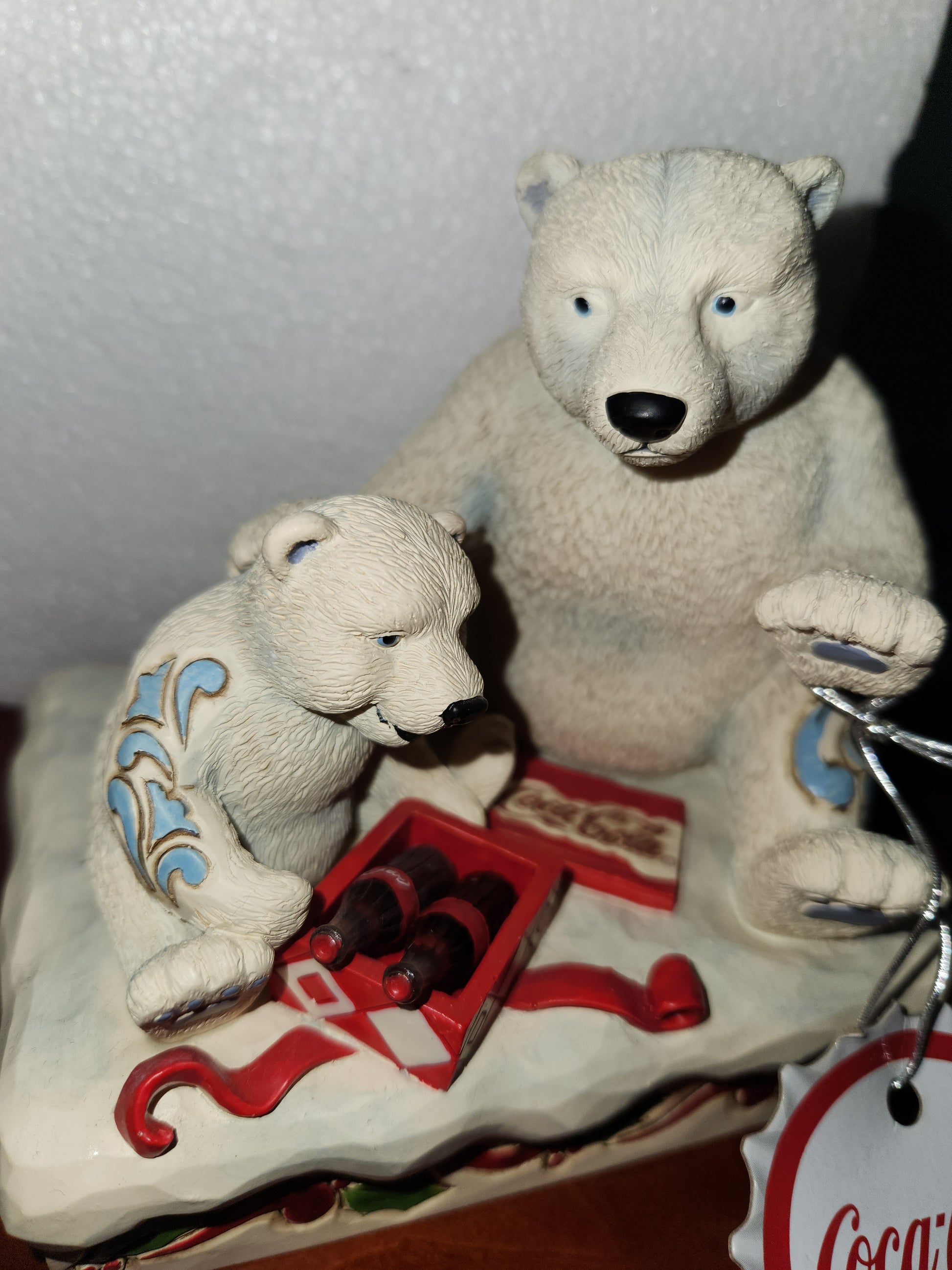 This is a gorgeous figurine from Jim Shore featuring polar bear parent and child opening a gift of Coca-Cola. 2018. I. Excellent new in box condition