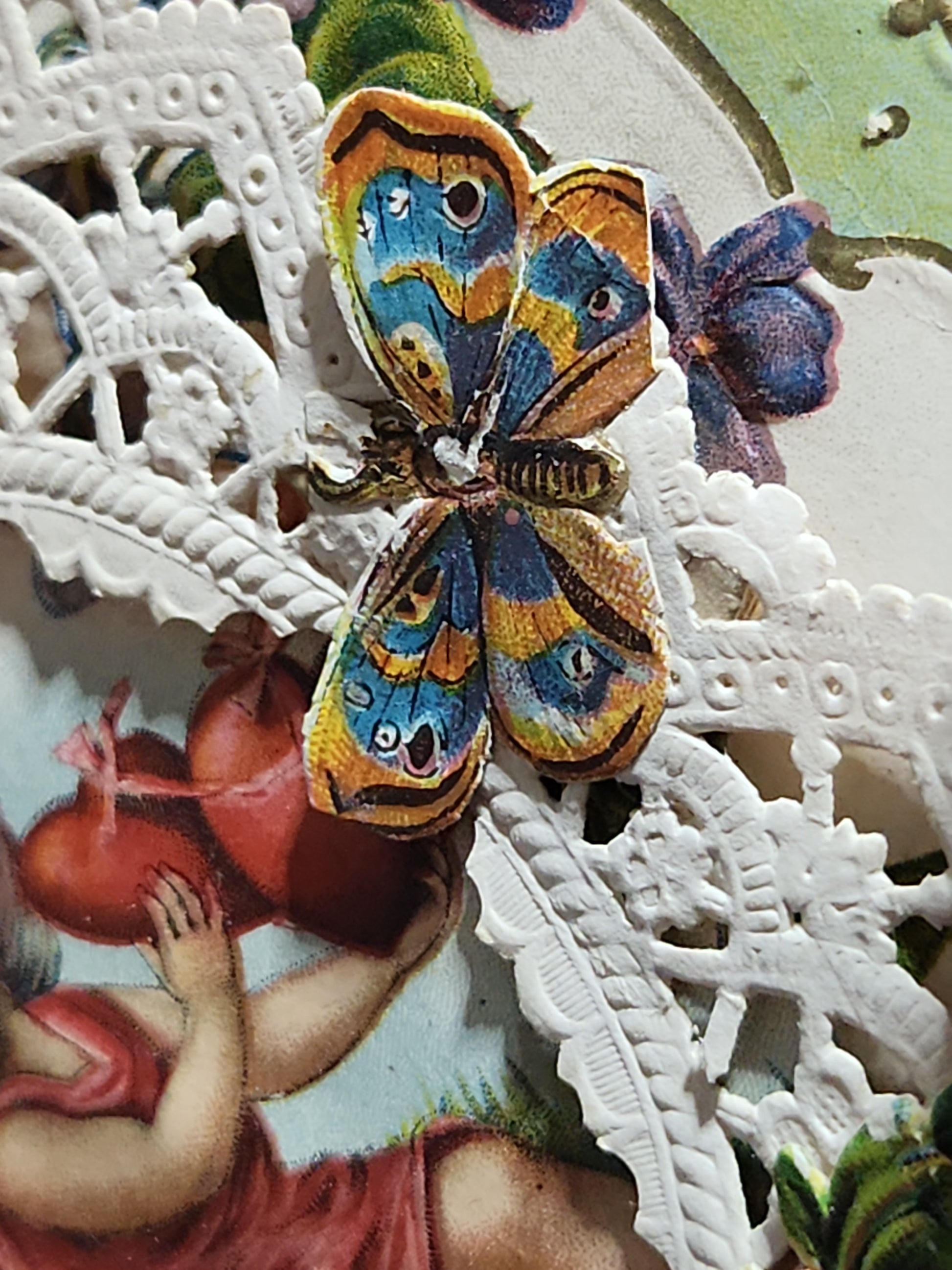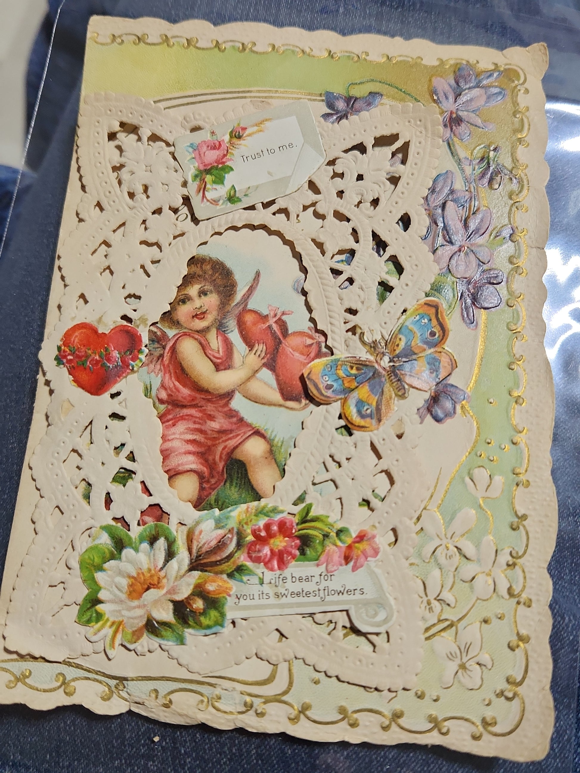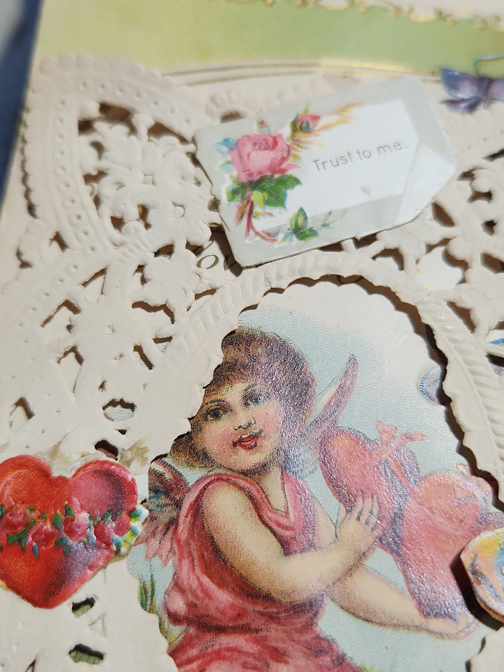 Antique Victorian Valentines Day card paper and lace