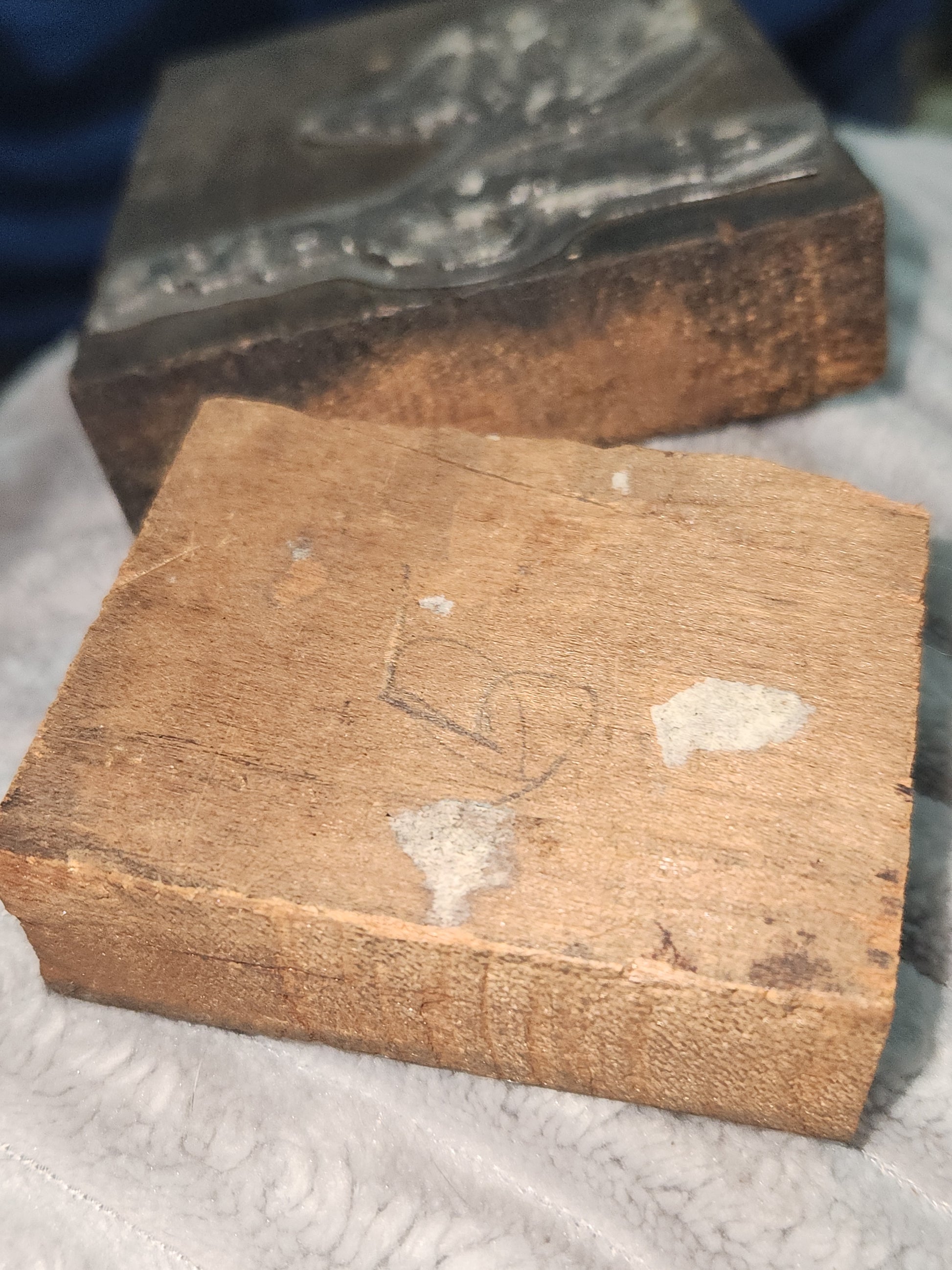 This is a set of two Easter and Lilly blocks. The stamp part is non-magnetic metal of some kind. The Easter block is 4 3/8" tall x 3 3/8" wide and it looks like the block was made from 2 different pieces of wood. The small Lilly block is 2 3/4" tall and just over 2" and it's left side looks like maybe a piece of wood broke off but it is not super rough. Please see photos as they are part of the description