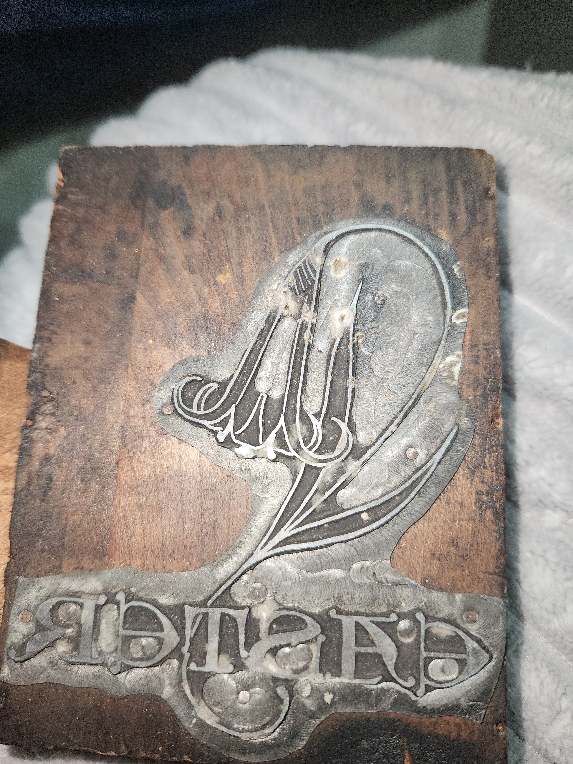 Vintage Wood Metal Newspaper Print Block Printer's Press Easter Lily 2 Blocks pb2e