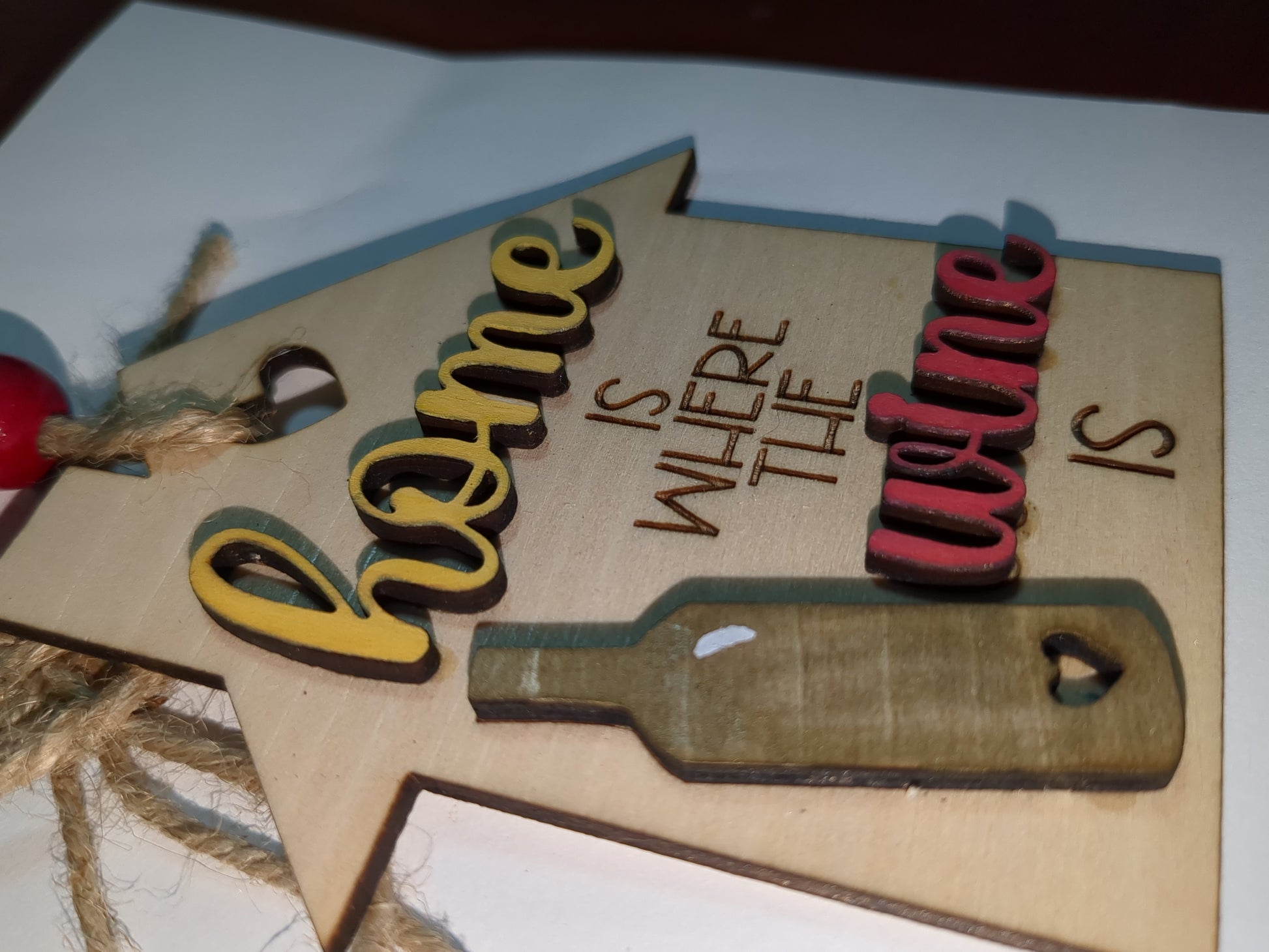 Add this to a bottle of wine for a nice gift. Cut from balsa wood and laser engraved. Hand painted by me, so colors on tag and beads may vary. Approximately 3.5 inches tall.