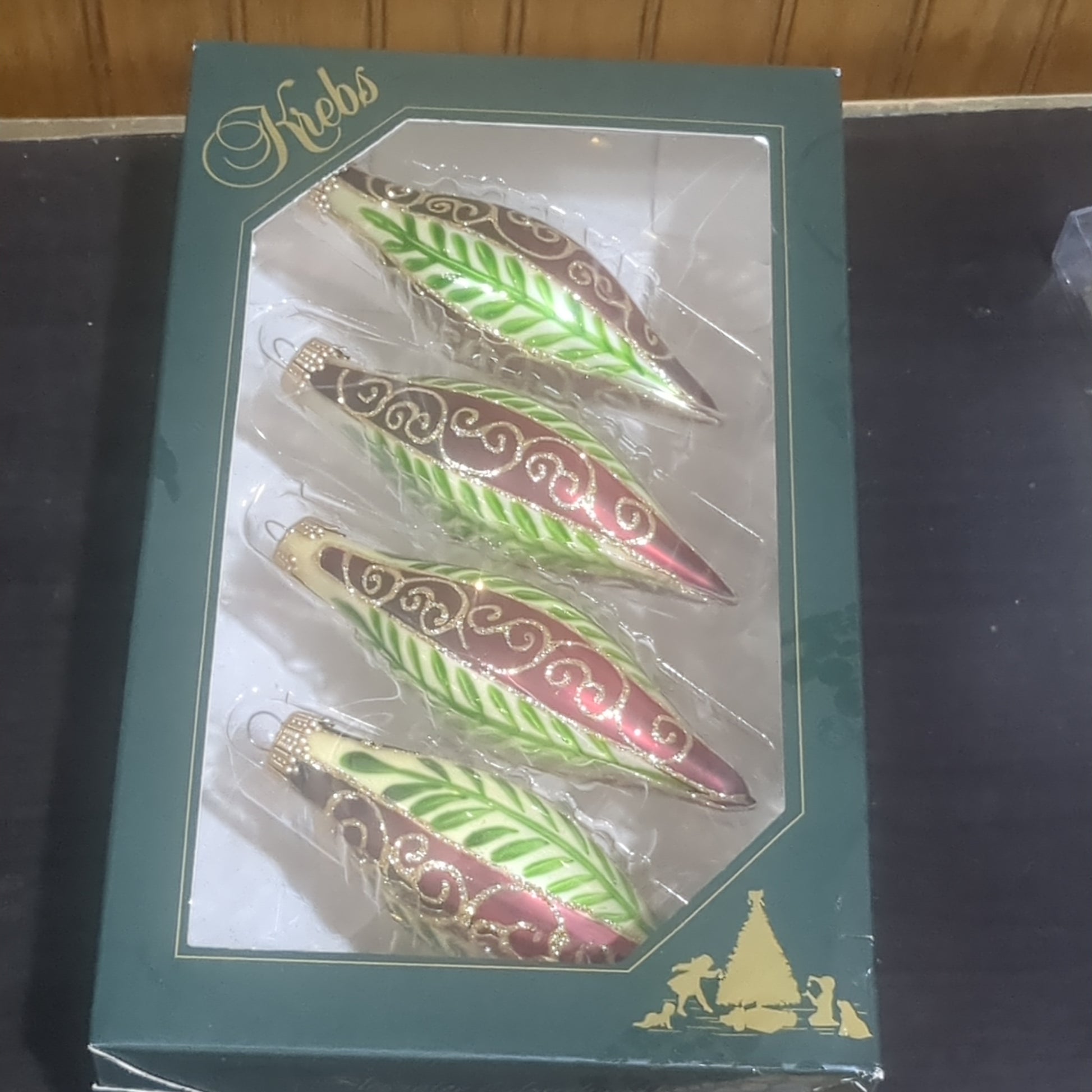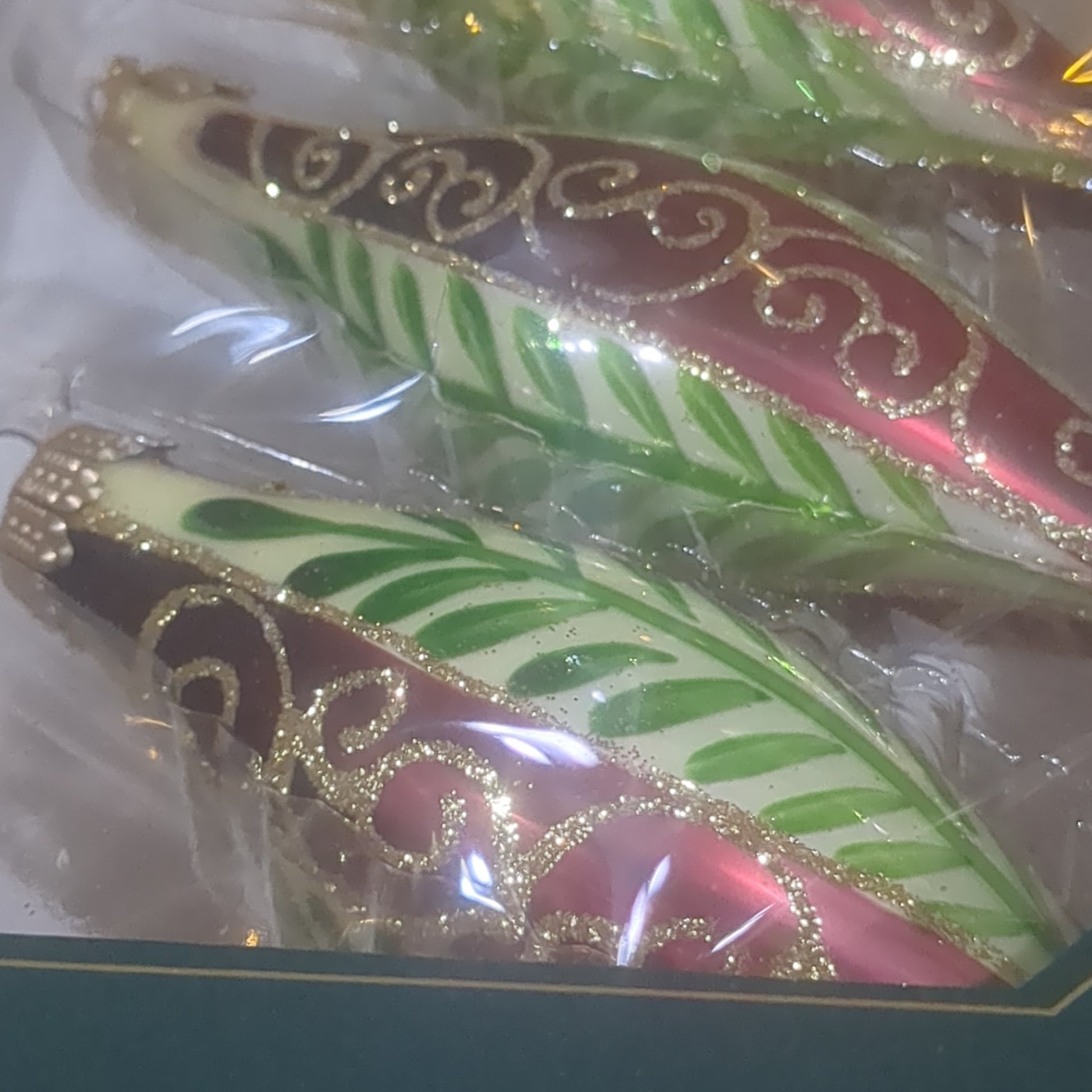 Christmas By Krebs Chablis Gold Shapes Leaves Scrolls Gold Decorated Boxed Glass Designer Seamless Glass Indoor Christmas & Party Decoration