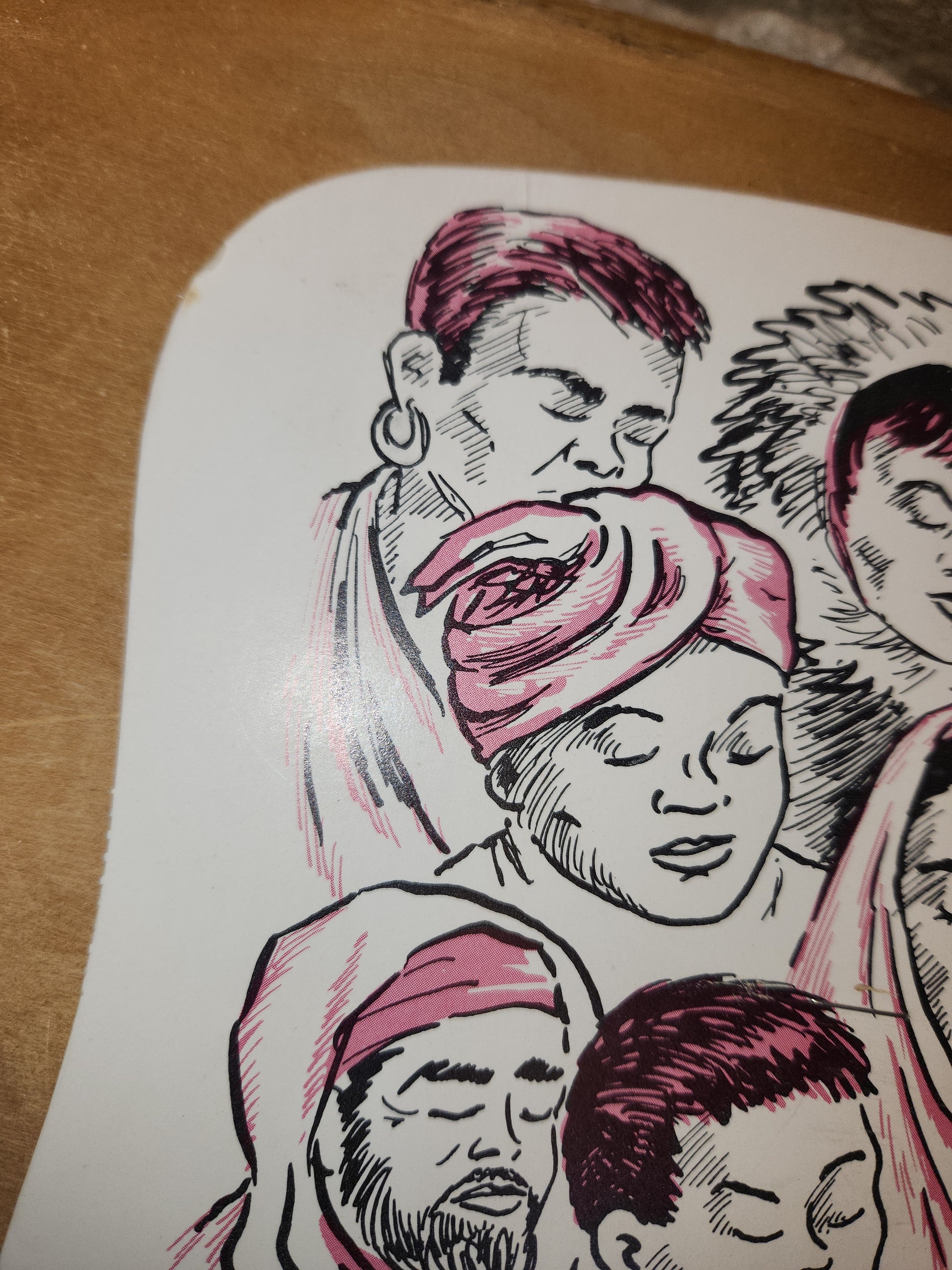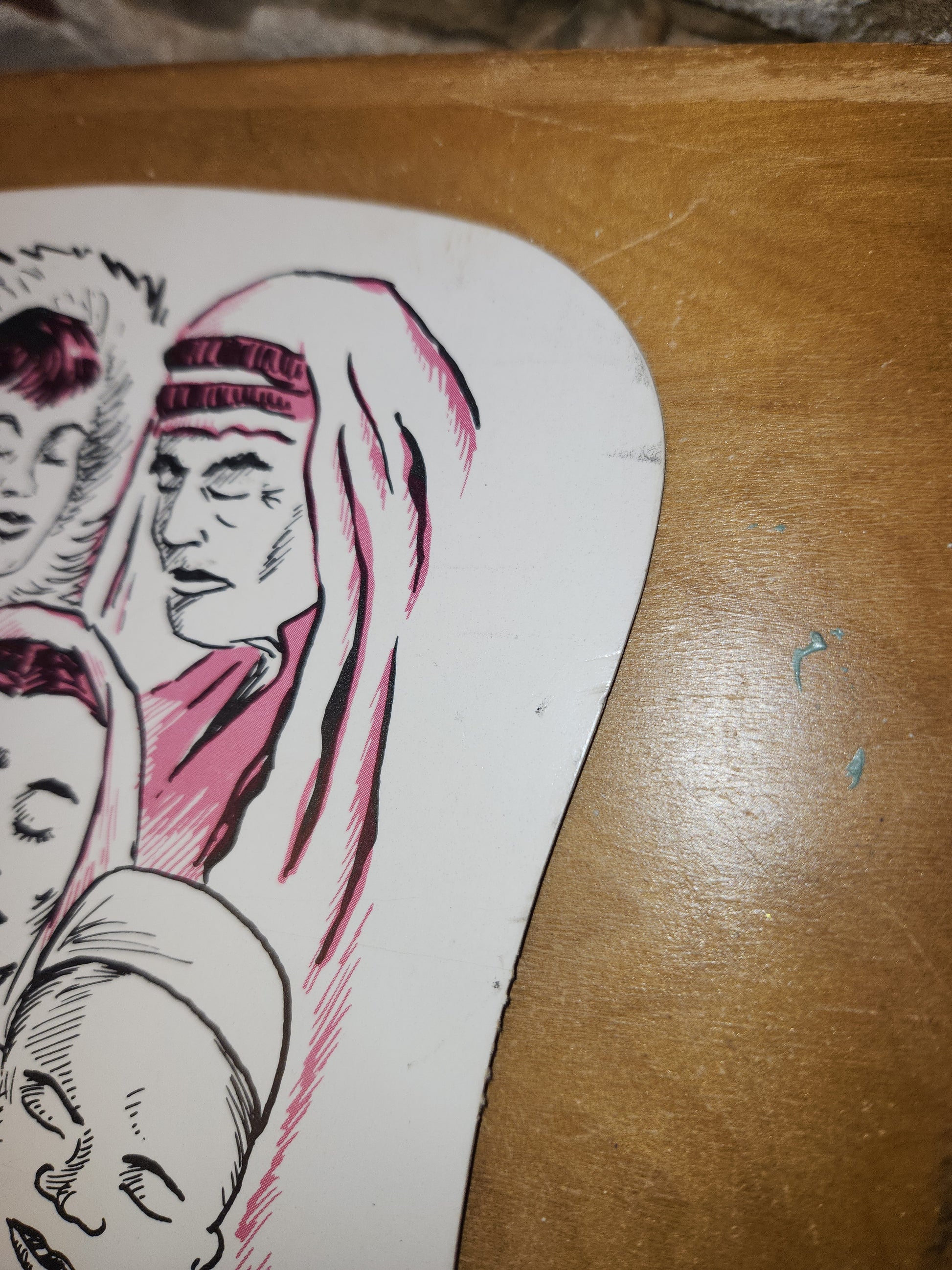 This fan is in fair condition. There is wear on all edges and areas of discoloration on the edges. There are several small areas on the back where the paper is ripped up. The stick has a few white marks on it. It is 11 3/4" tall and 7 1/2" wide Please see photos as they are part of the description